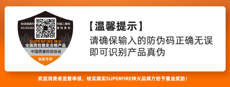(4)产品链接首图必须为神火品牌最新商标 LOGO“SUPERFIRE 神火”。