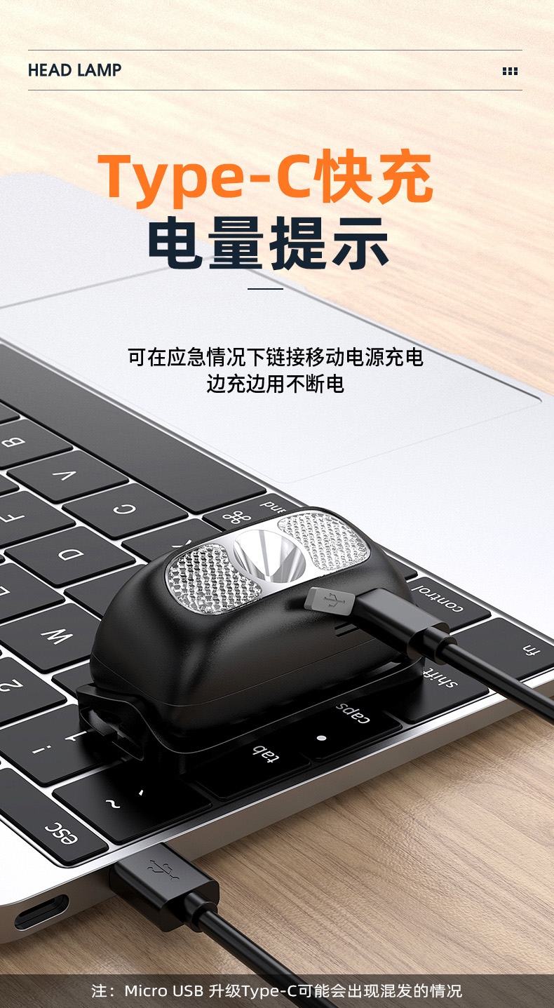 1、多样化充电,使用方便;设有USB充电接口,可使用充电器、充电宝、电脑等设备为产品充电。 2、此款头灯款式潮流、设计小巧、携带方便、头带材质柔软、可自由拆卸、便于清洗。