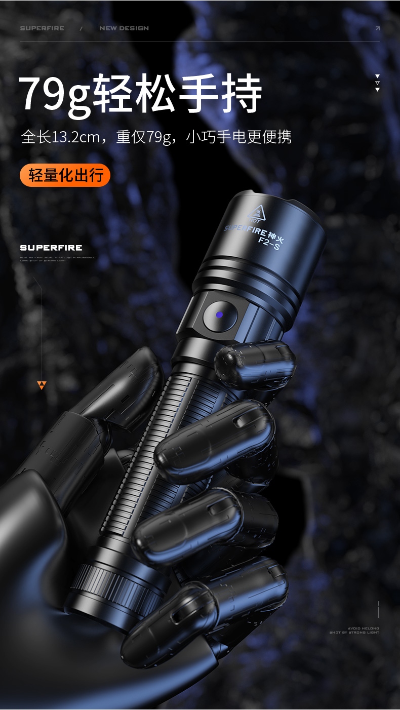 6、最高700Lm亮度,最远220m 射程,小身材大能量。