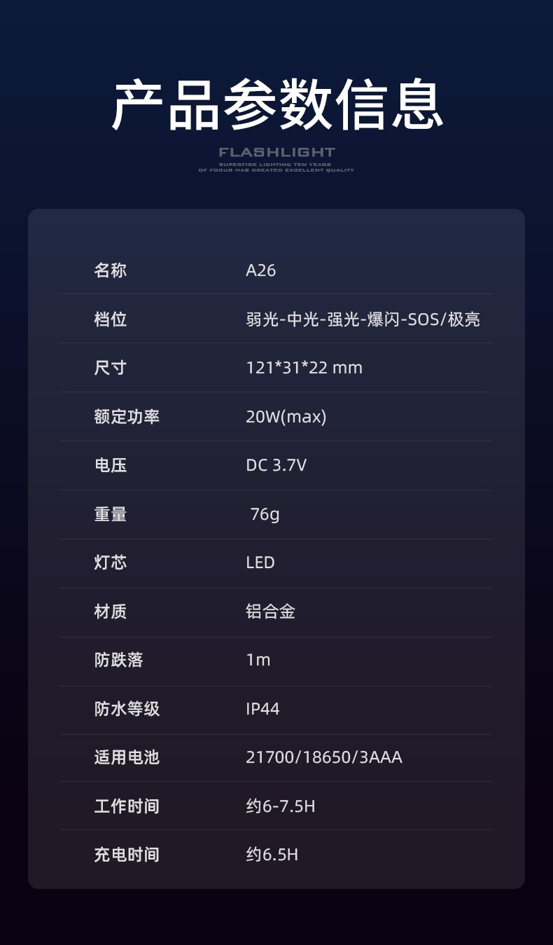 8、铝合金筒身,防水耐摔。