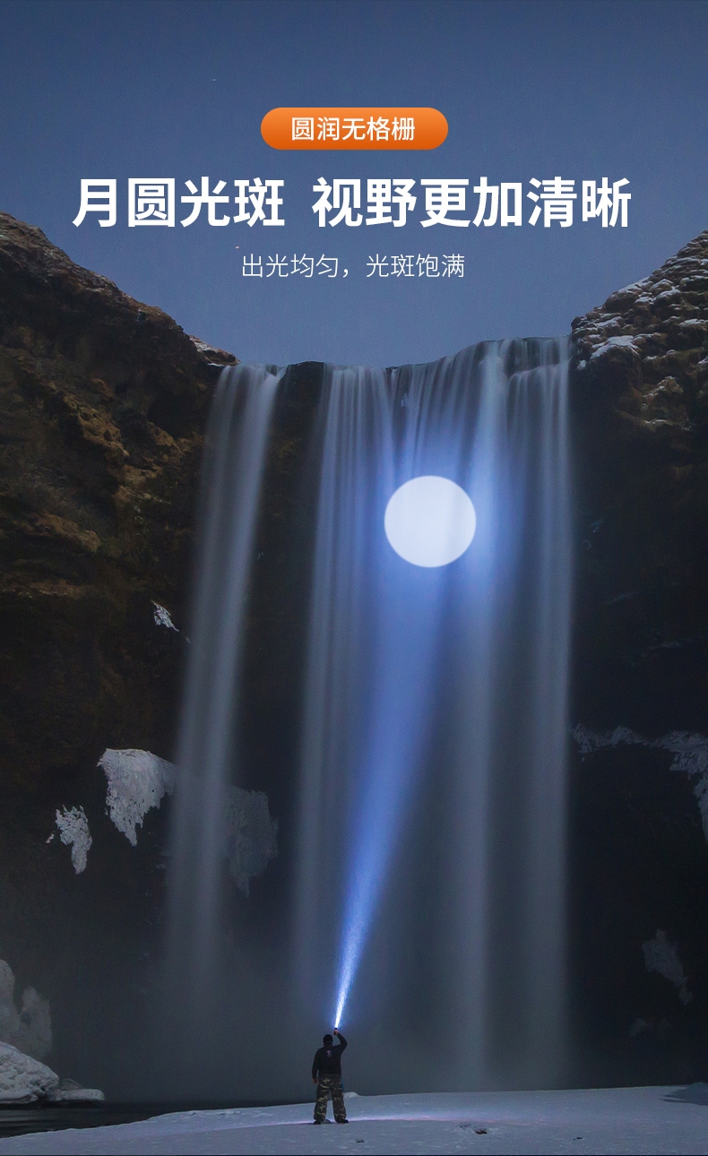 2、聚光时圆形光斑,光斑圆润,照明效果更好
