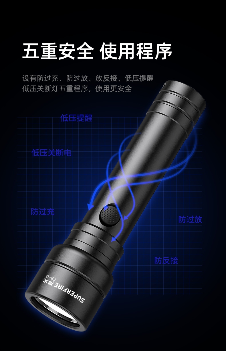 四档调光 Type-C充电 电量显示 铝合金筒身 持久续航 强力防水