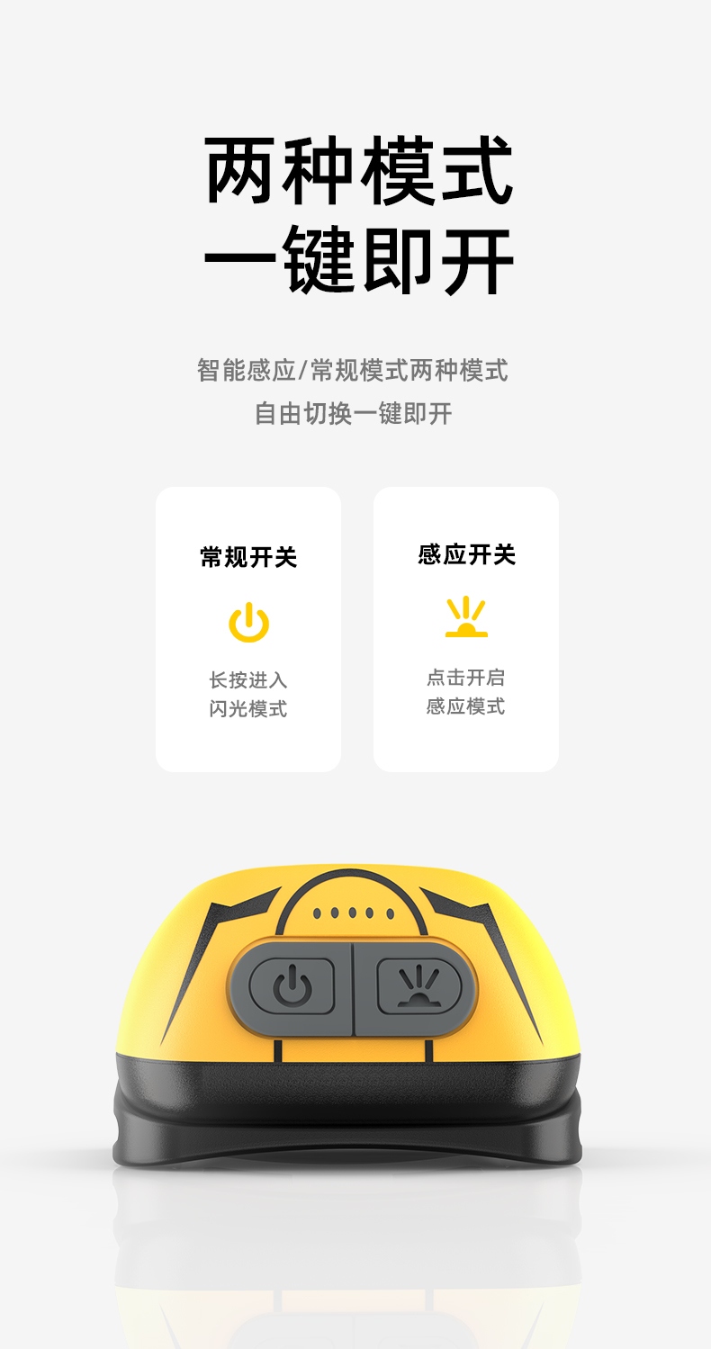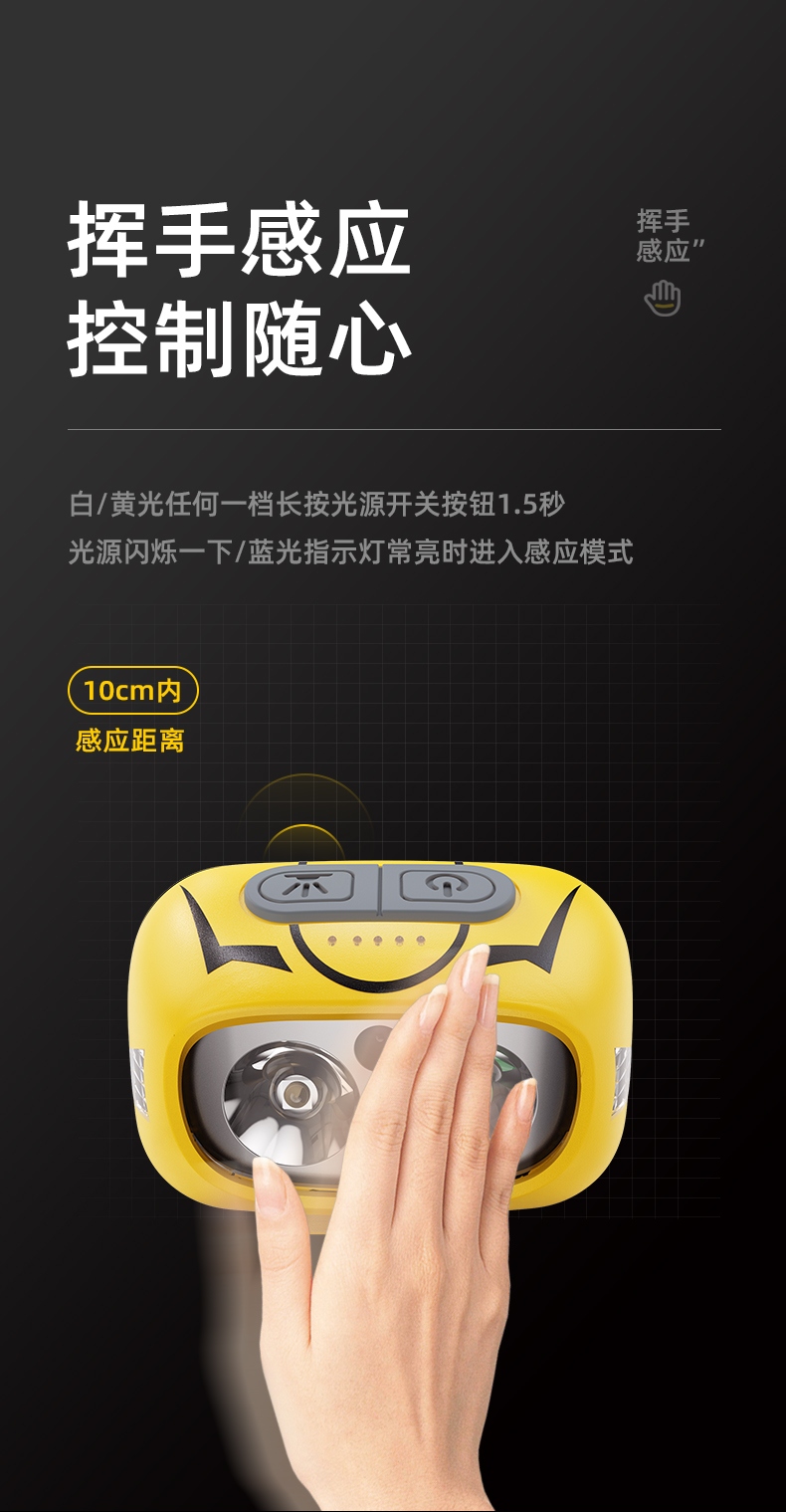 1.单击左边开关开启感应功能,同时开启强光档,续按关闭感应功能(关闭感应功能,光源不会关闭),当感应功能开启时,单击右边开关可正常调节档位。 2.多样化充电,使用方便:设有Type-c充电口,可使用充电器、充电宝、电脑等设备为灯具充电。 3.电量显示:实时