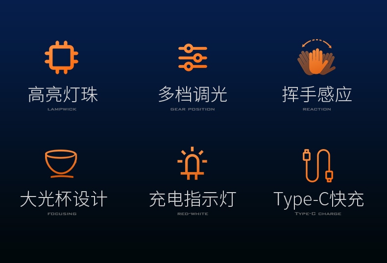 1、六档调光,可满足不同使用场景下的照明需求。 2、进口高亮朗明纳斯灯珠,照明效果更好。 3、含档位记忆,任意档位快捷关机 ,开机恢复关机前档位。