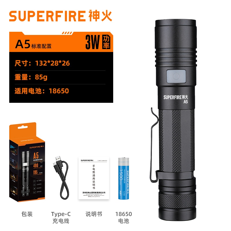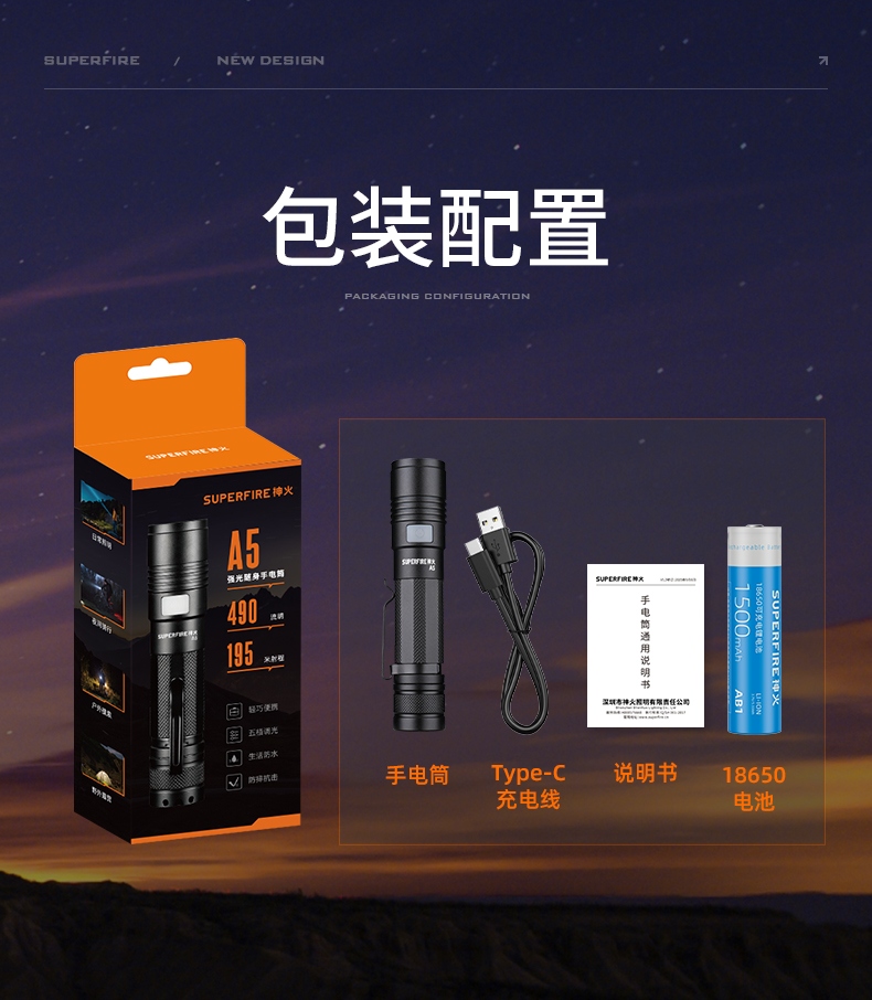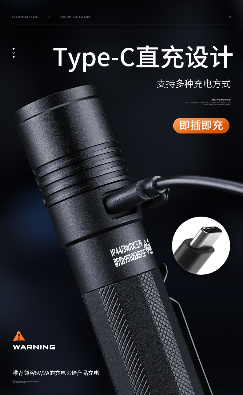 四档调光 Type-C充电 电量显示 铝合金筒身 持久续航 强力防水