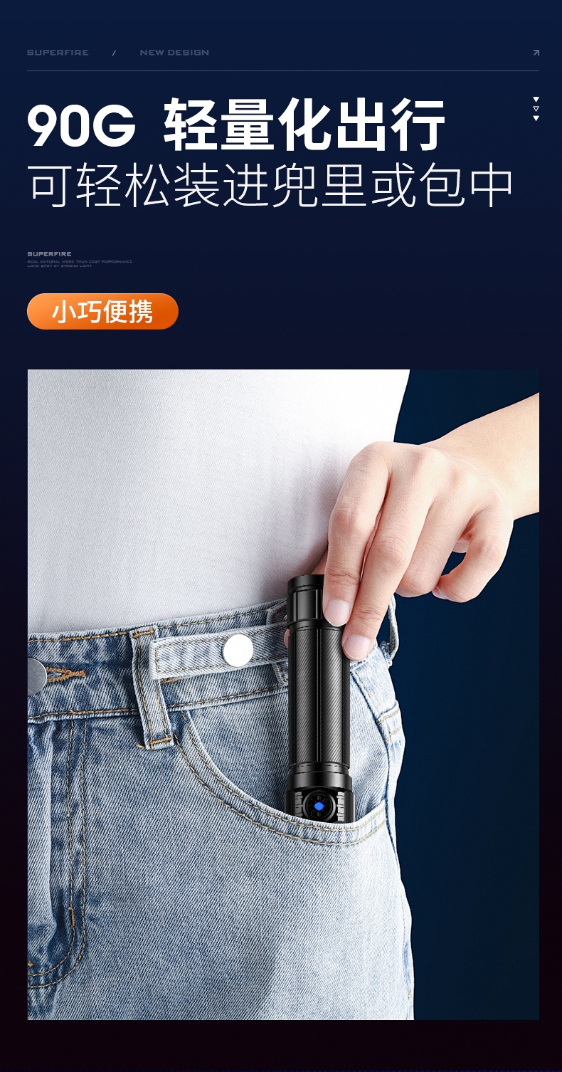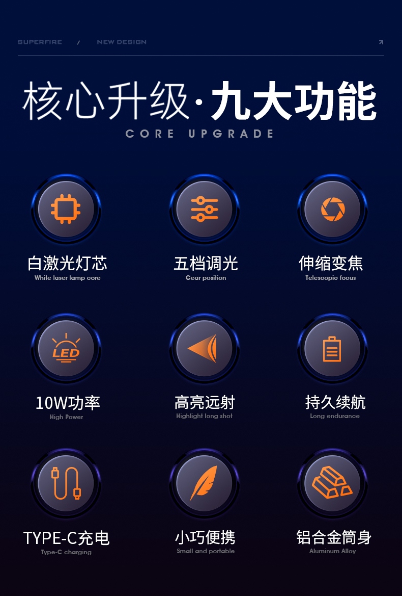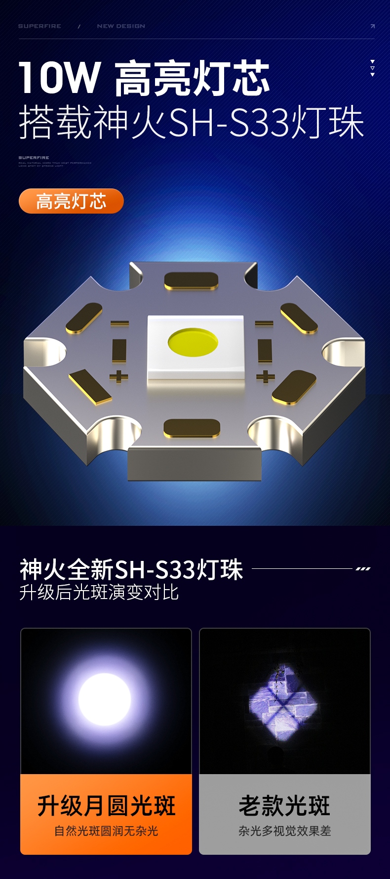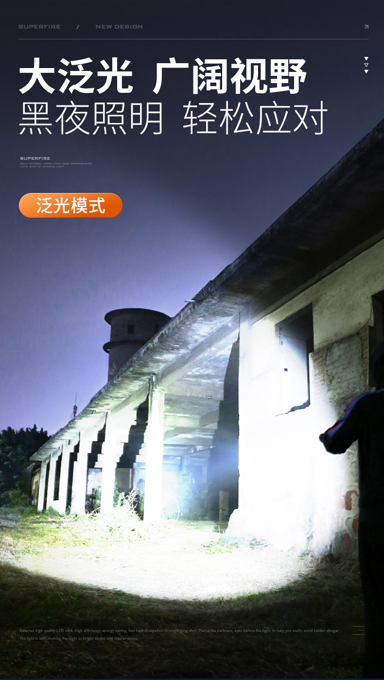 1.伸缩调焦、聚泛随心。 2.多电池兼容,兼容21700/18650/AAA电池