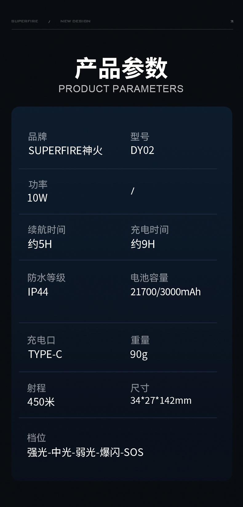四档调光 Type-C充电 电量显示 铝合金筒身 持久续航 强力防水
