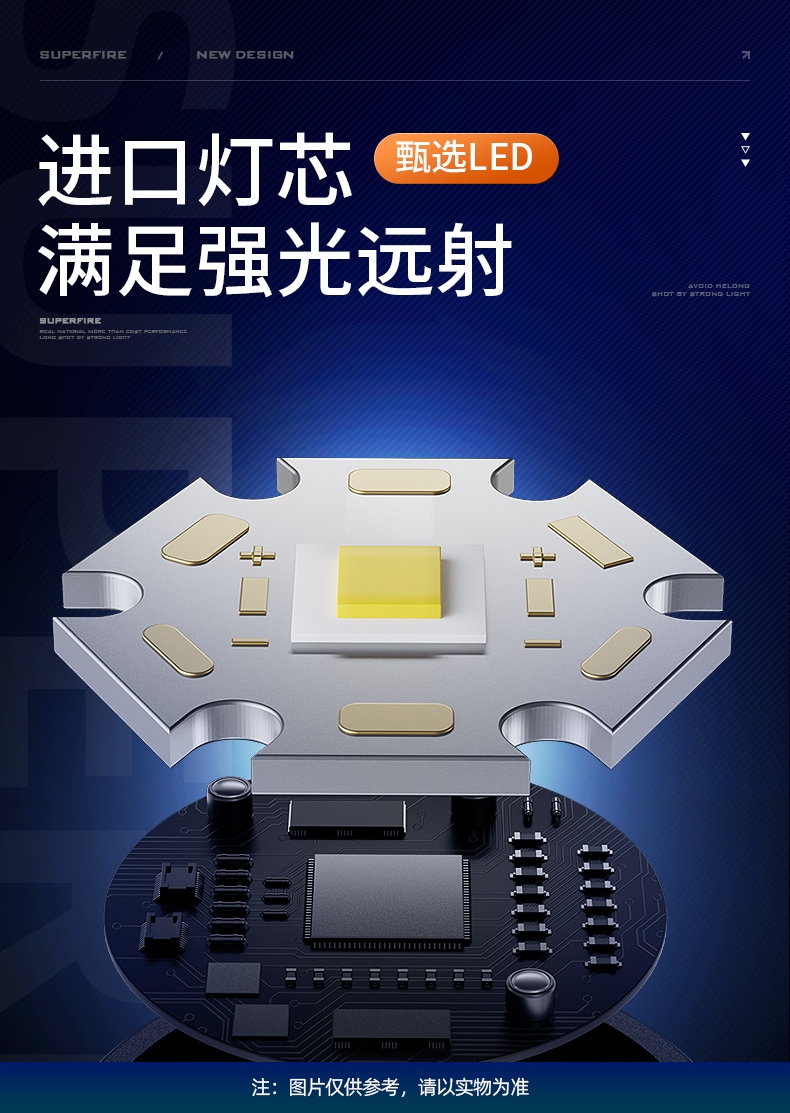 1、大尺寸铝合金光杯,光斑更圆润。 2、新型高亮远射灯珠,40W大功率,亮度高,照明效果好。