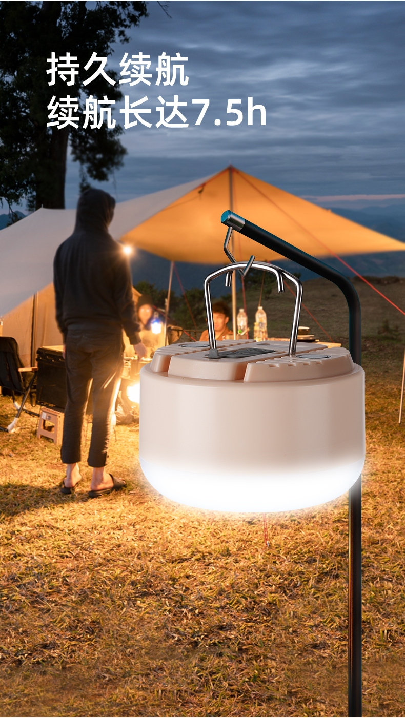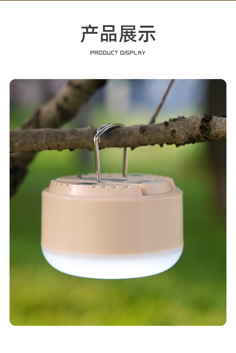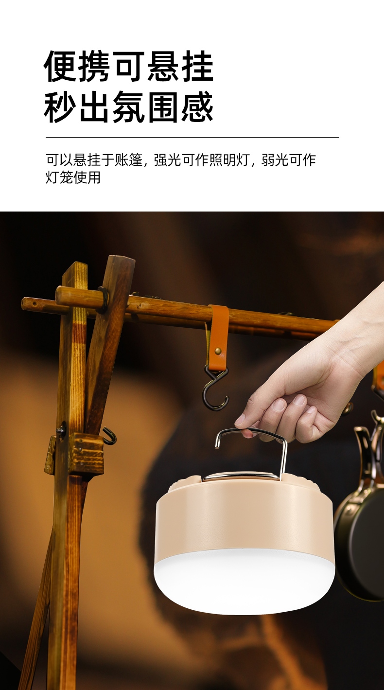 可以悬挂于账篷,强光可作照明灯,弱光可作灯笼使用