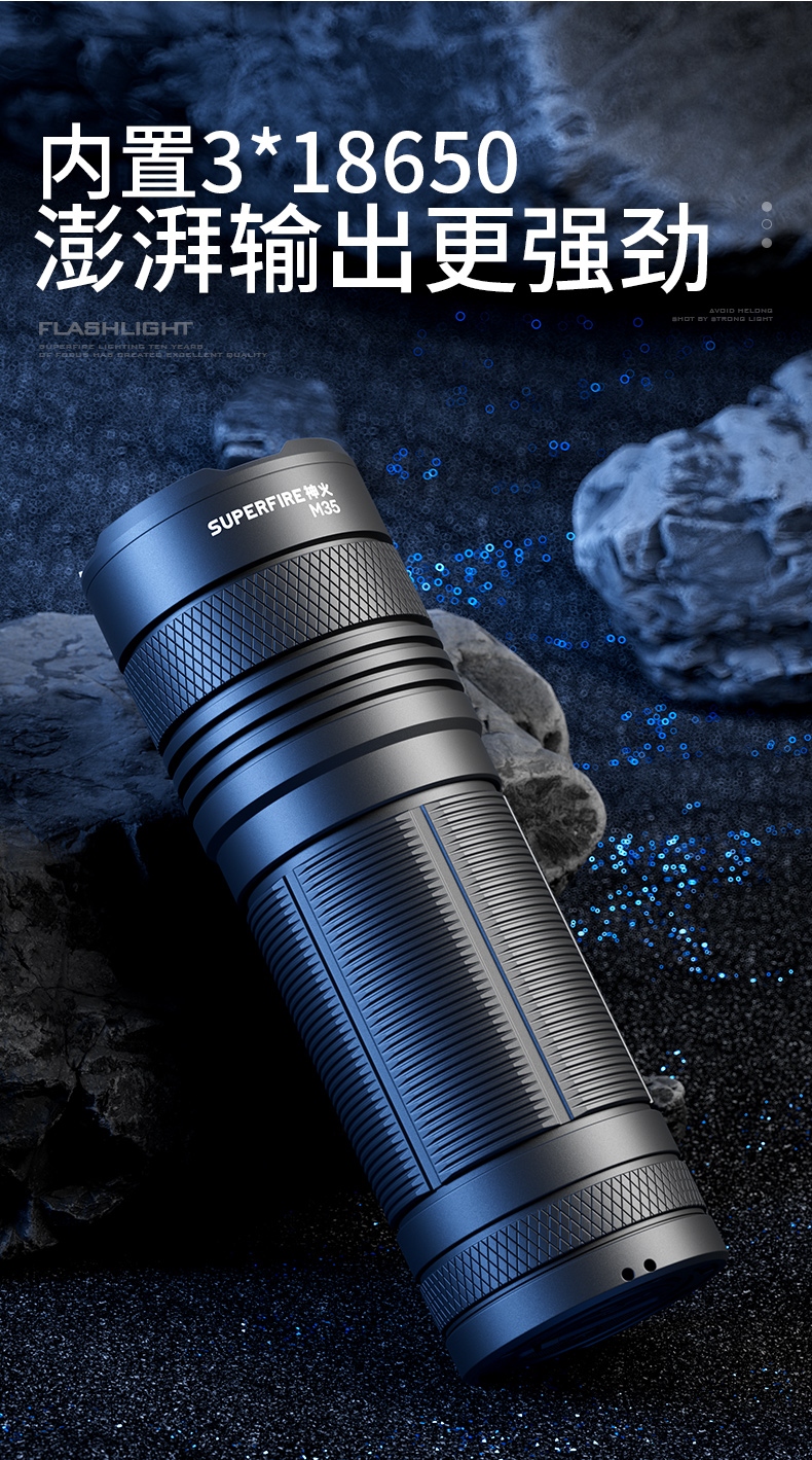 1、千米远射,射程更远,光斑更聚焦。 2、进口灯珠,亮度高,照明效果更好。 3、前后双按键,光源一键点亮,高亮瞬间开启。