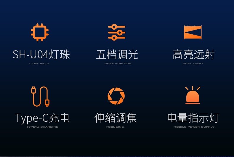 强光亮度,运动头灯,前后均衡设计,轻便不压头,可调节式头灯带,佩戴方便舒适,伸缩调焦,光照范围大,照射距离远,头灯角度调节,超90度角度随意调节,适宜各种环境使用