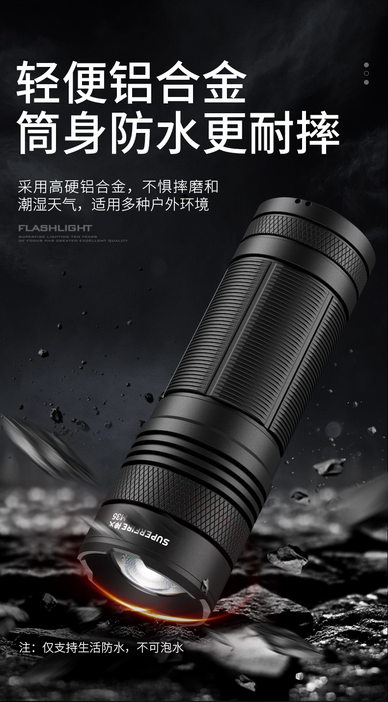 四档调光 Type-C充电 电量显示 铝合金筒身 持久续航 强力防水