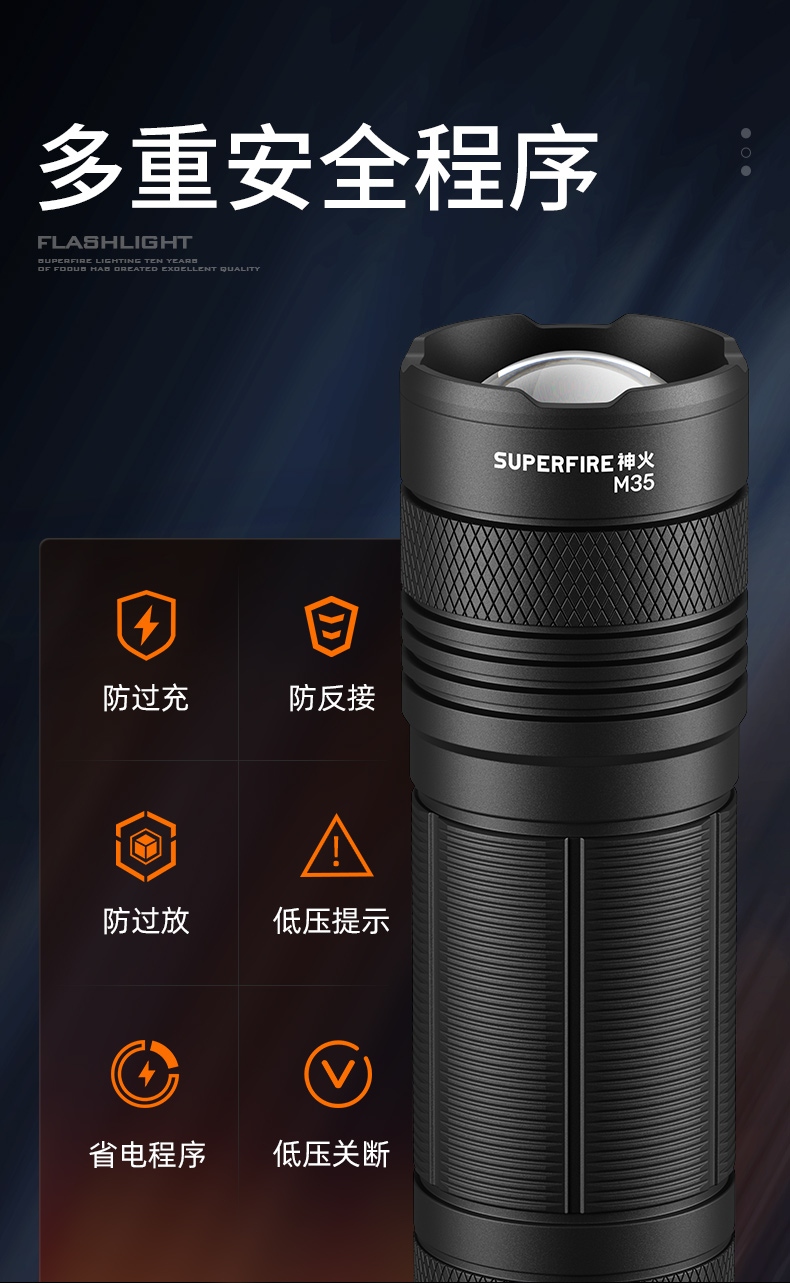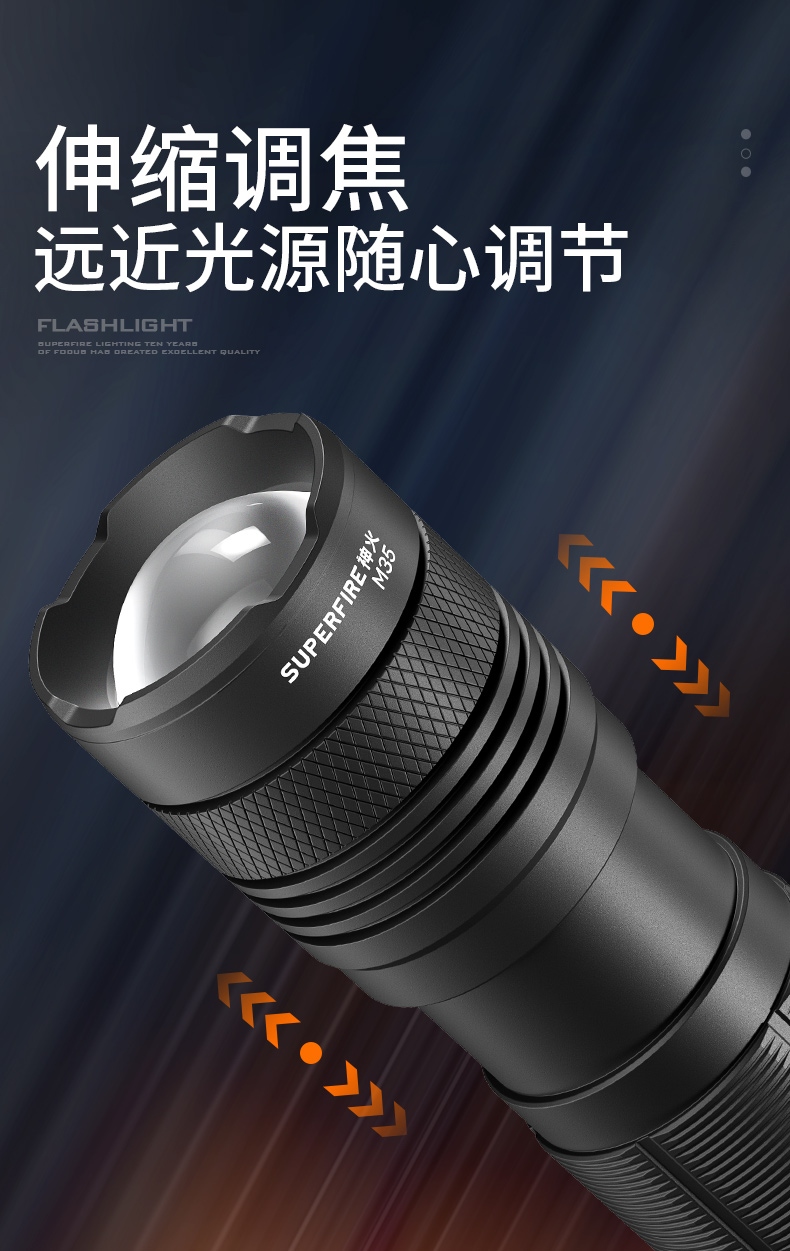1、多档调光,可满足不同场景下的使用需求。 2、推拉灯头可实现伸缩调焦。 3、光斑大,照明效果好。
