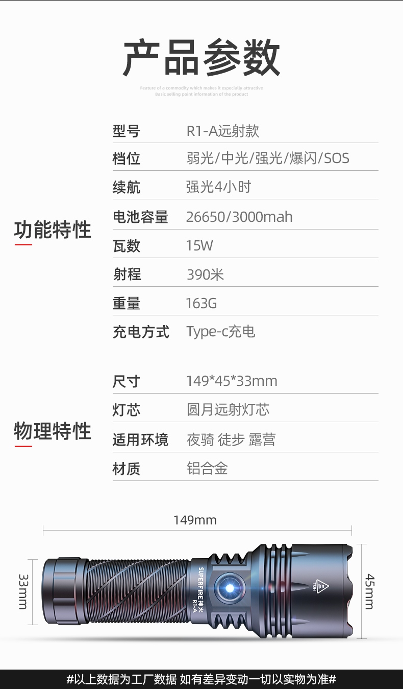 四档调光 Type-C充电 电量显示 铝合金筒身 持久续航 强力防水
