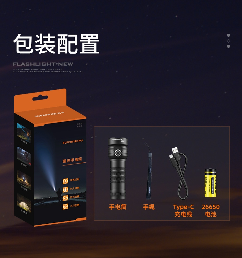 四档调光 Type-C充电 电量显示 铝合金筒身 持久续航 强力防水