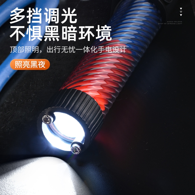 2,按压灯光键,挡位依次:红蓝慢闪-红蓝快闪-红蓝长亮-手电强光-手电爆闪-关闭;