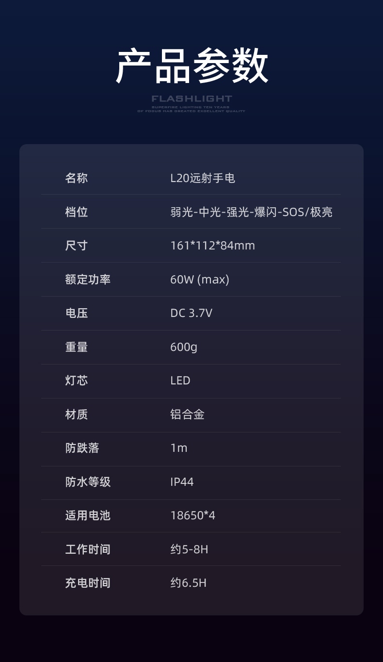 8、铝合金筒身,防水耐摔。