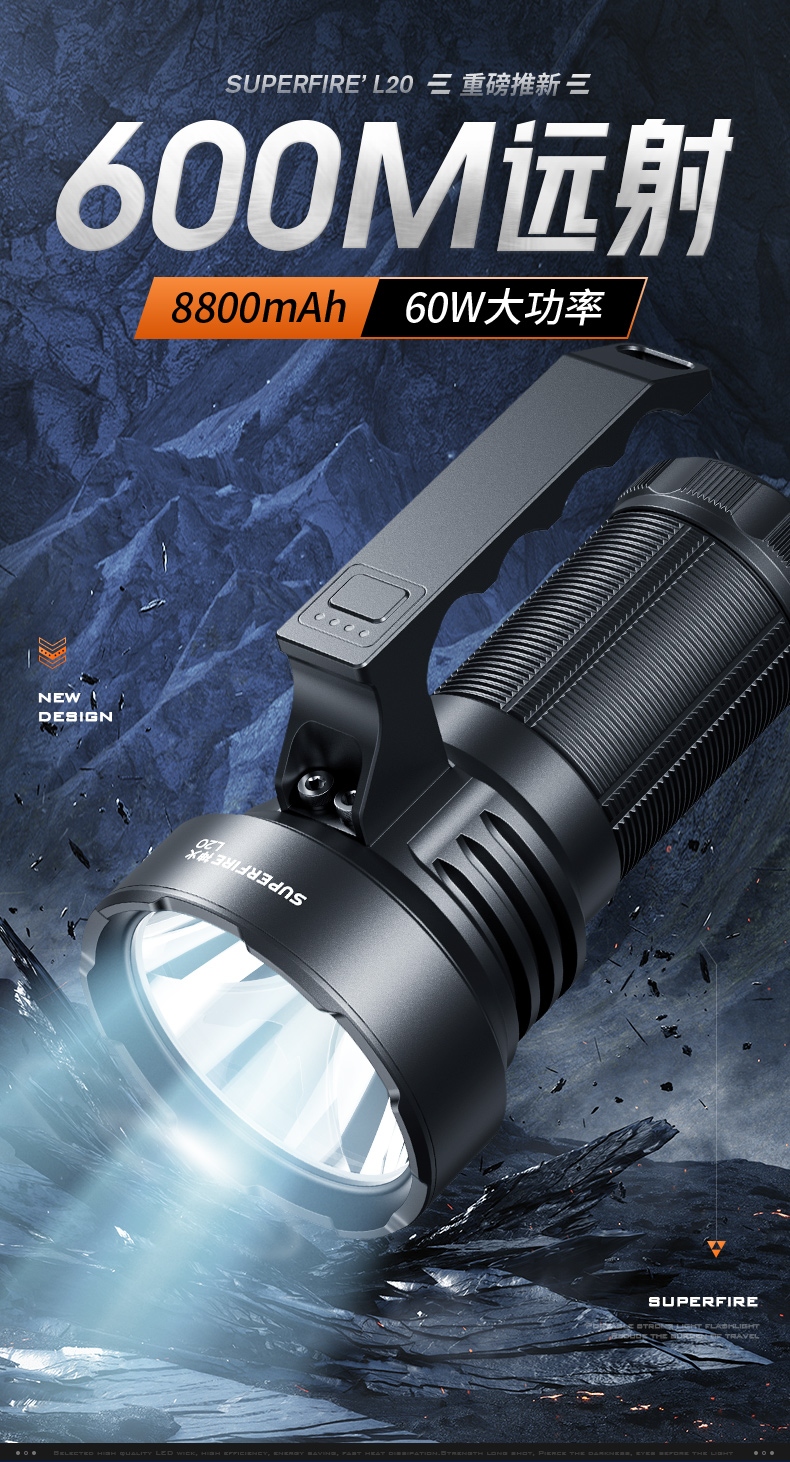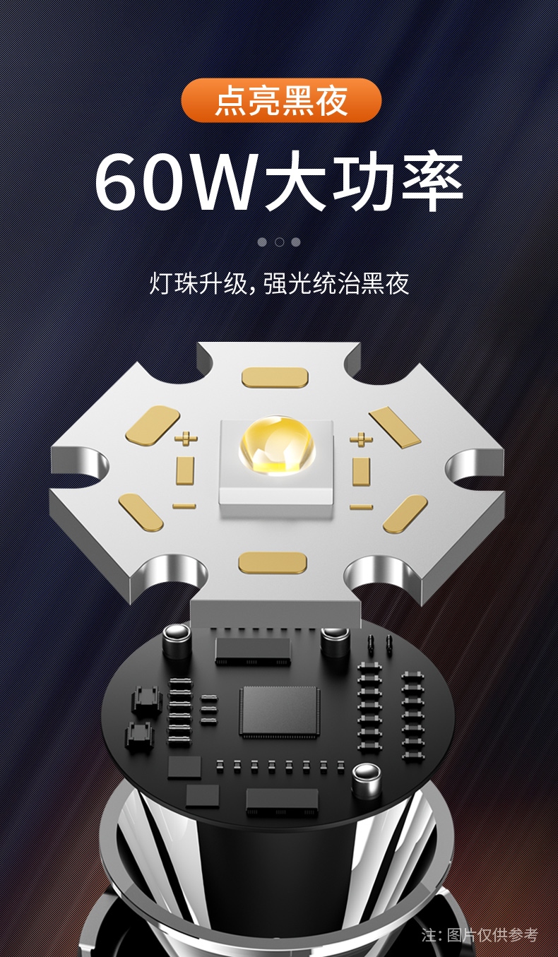 3、新型高亮远射灯珠,60W大功率,亮度高,照明效果好。