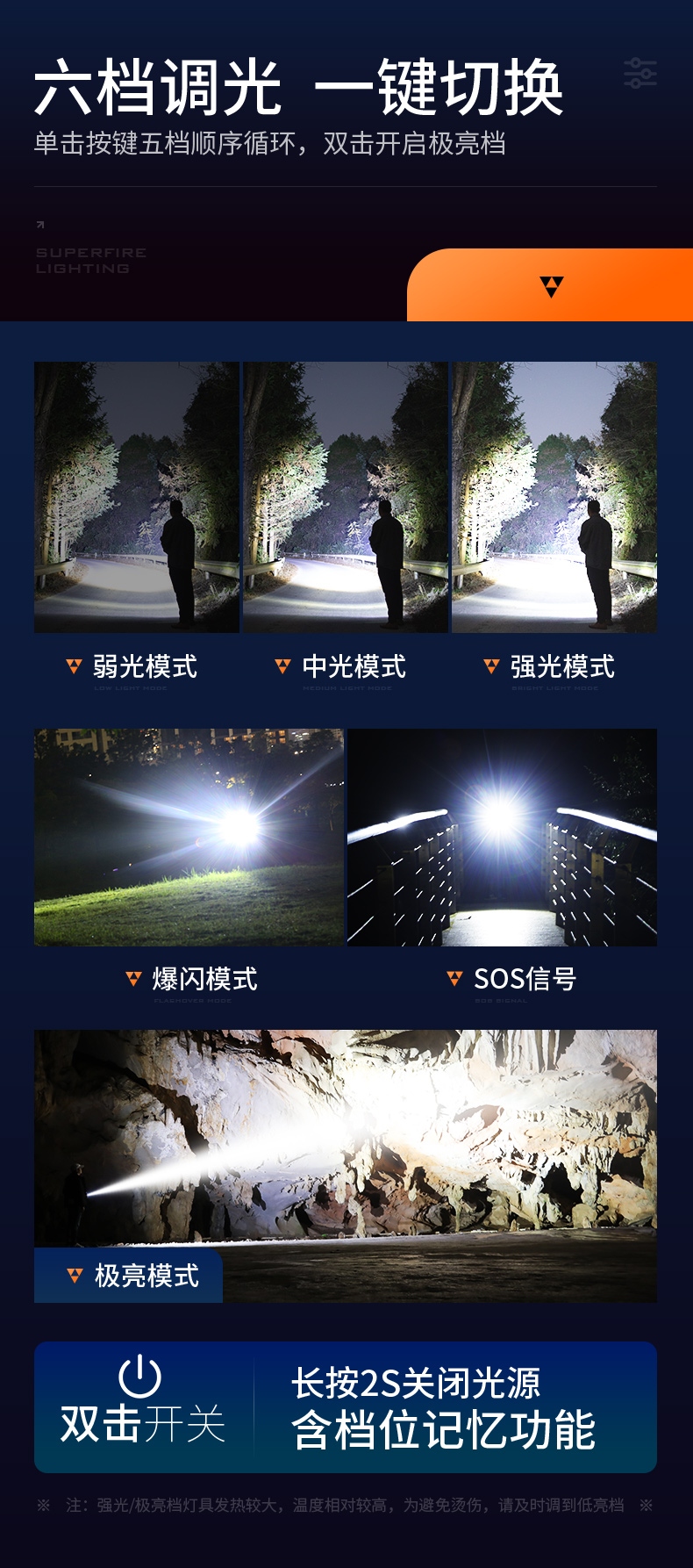 1、多档调光,可满足不同使用场景下的照明需求。