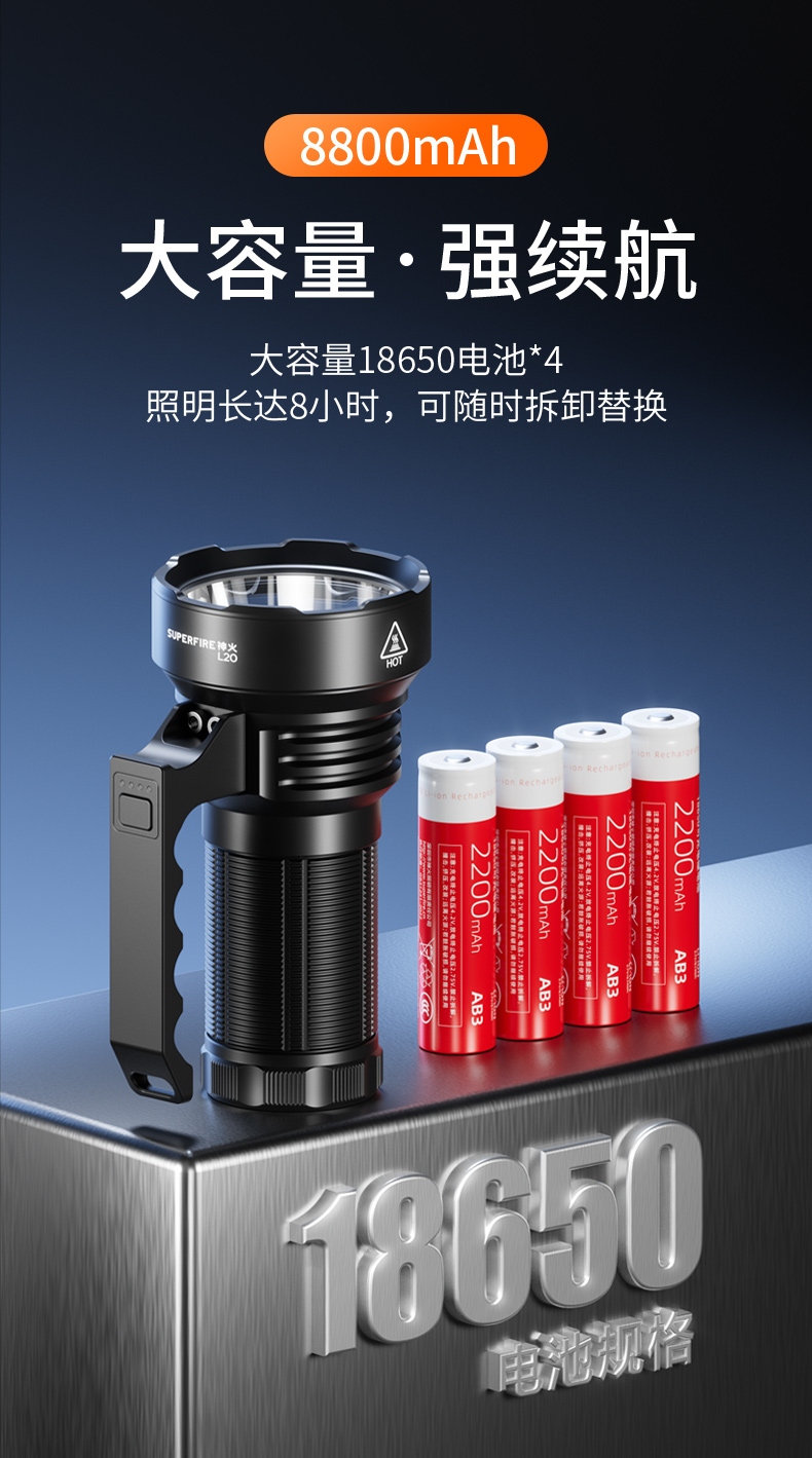 4、外置4*18650电池,容量更大,替换更省心。