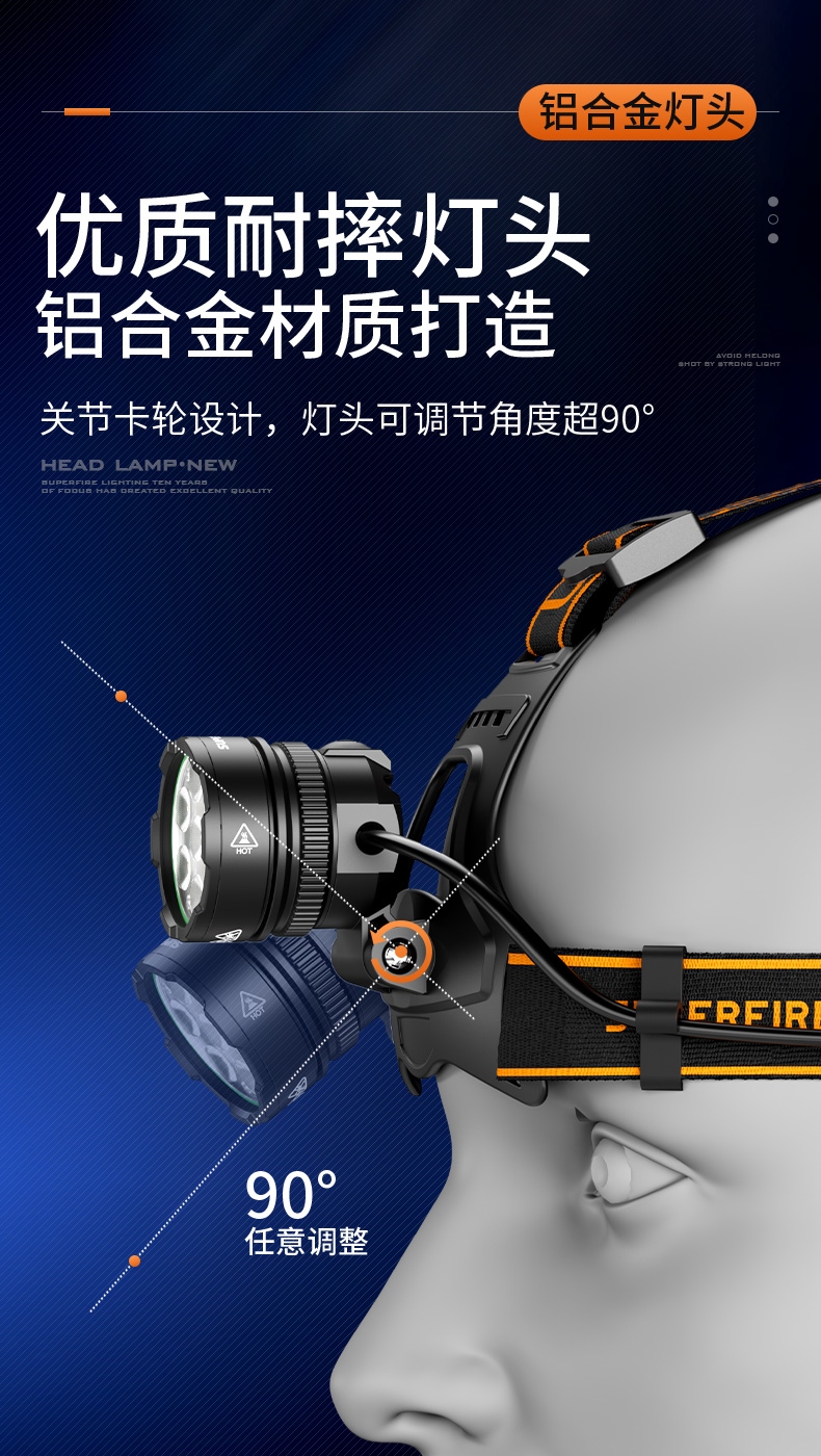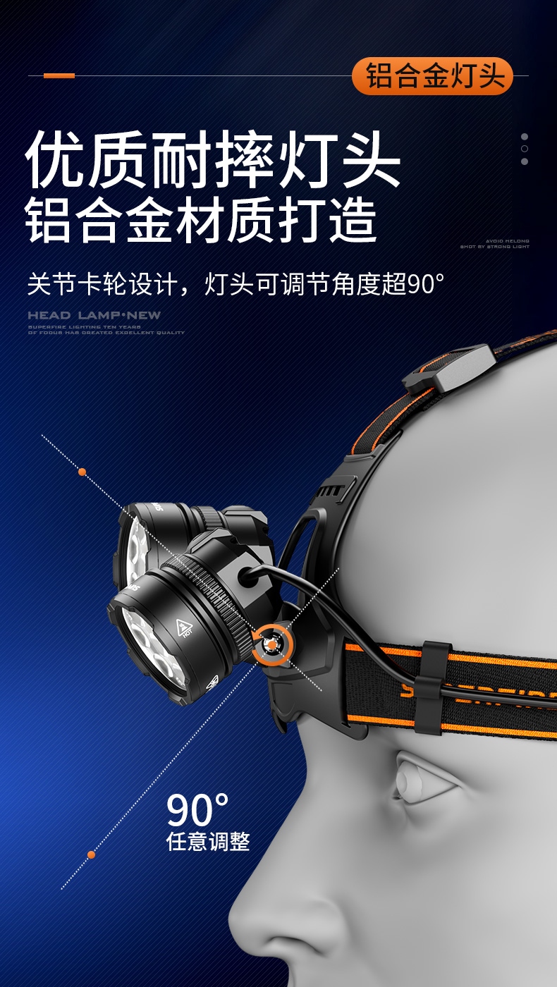 5、头灯角度调节:超90°角度随意调节,适宜各环境使用;