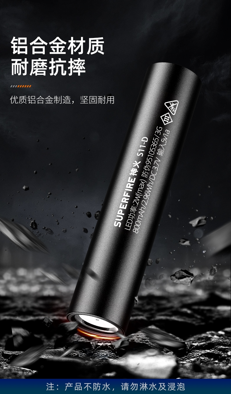 四档调光 Type-C充电 电量显示 铝合金筒身 持久续航 强力防水