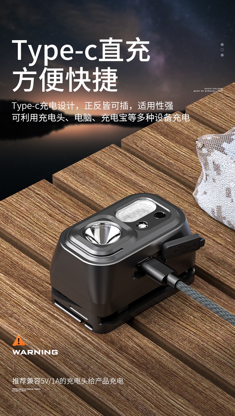 4、多样化充电,使用方便;设有USB充电接口,可使用充电器、充电宝、电脑等设备为灯具充电。