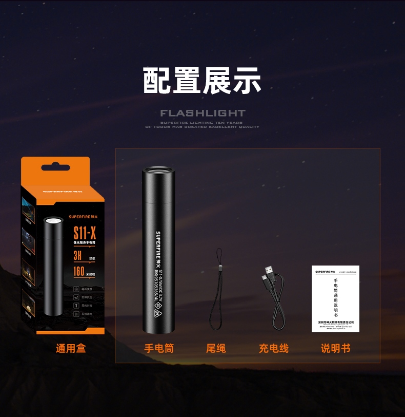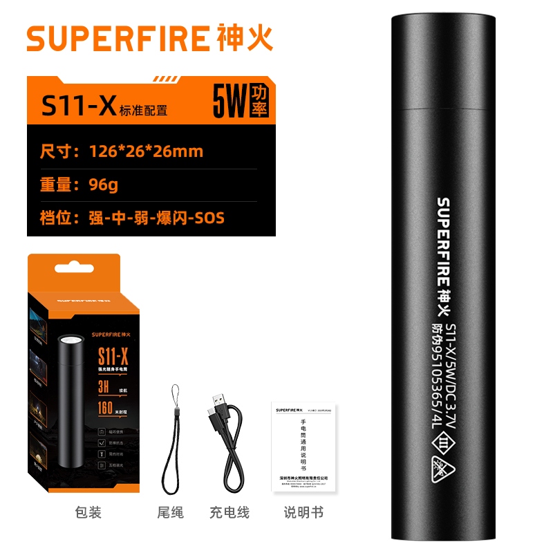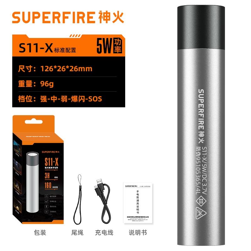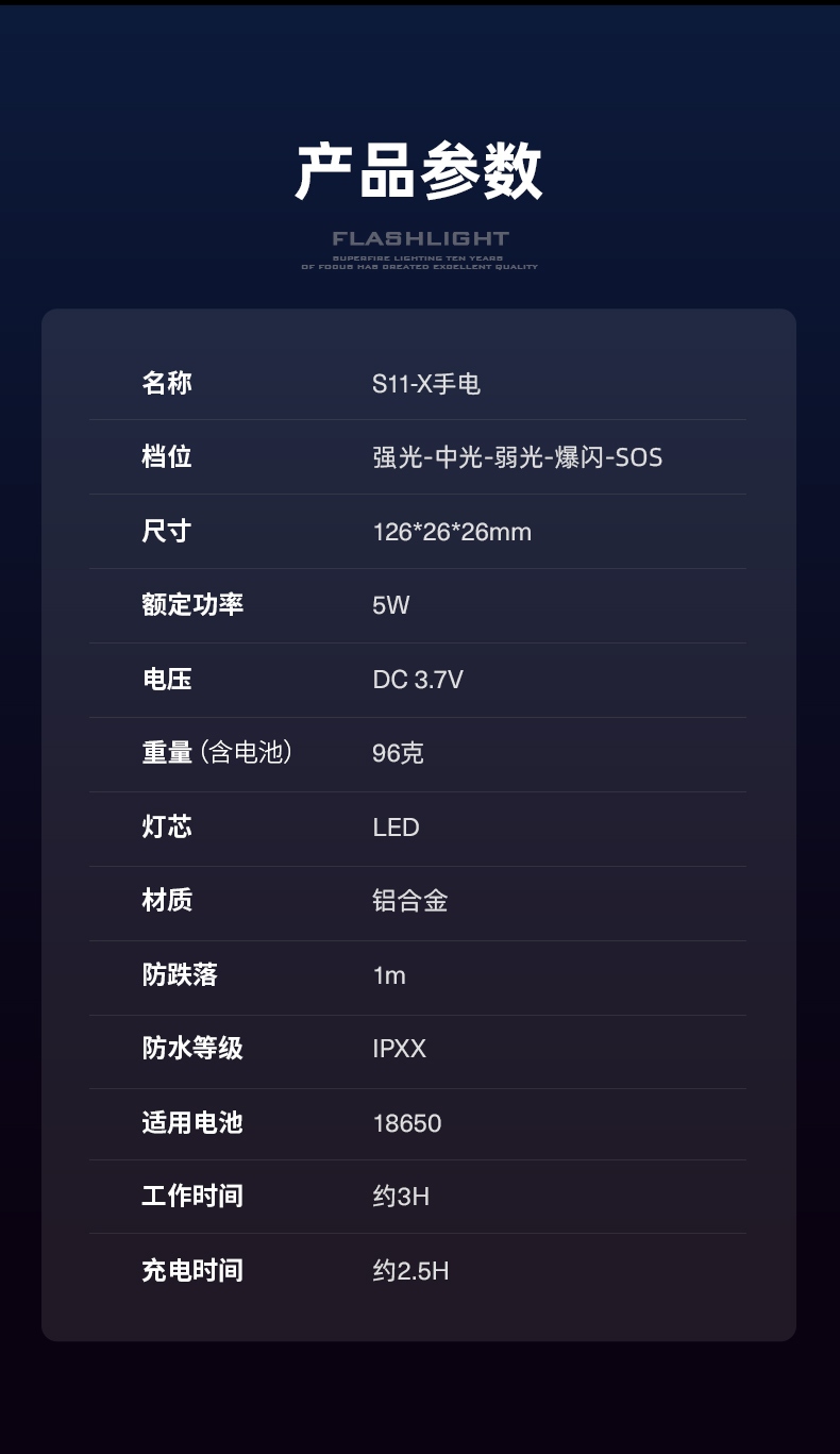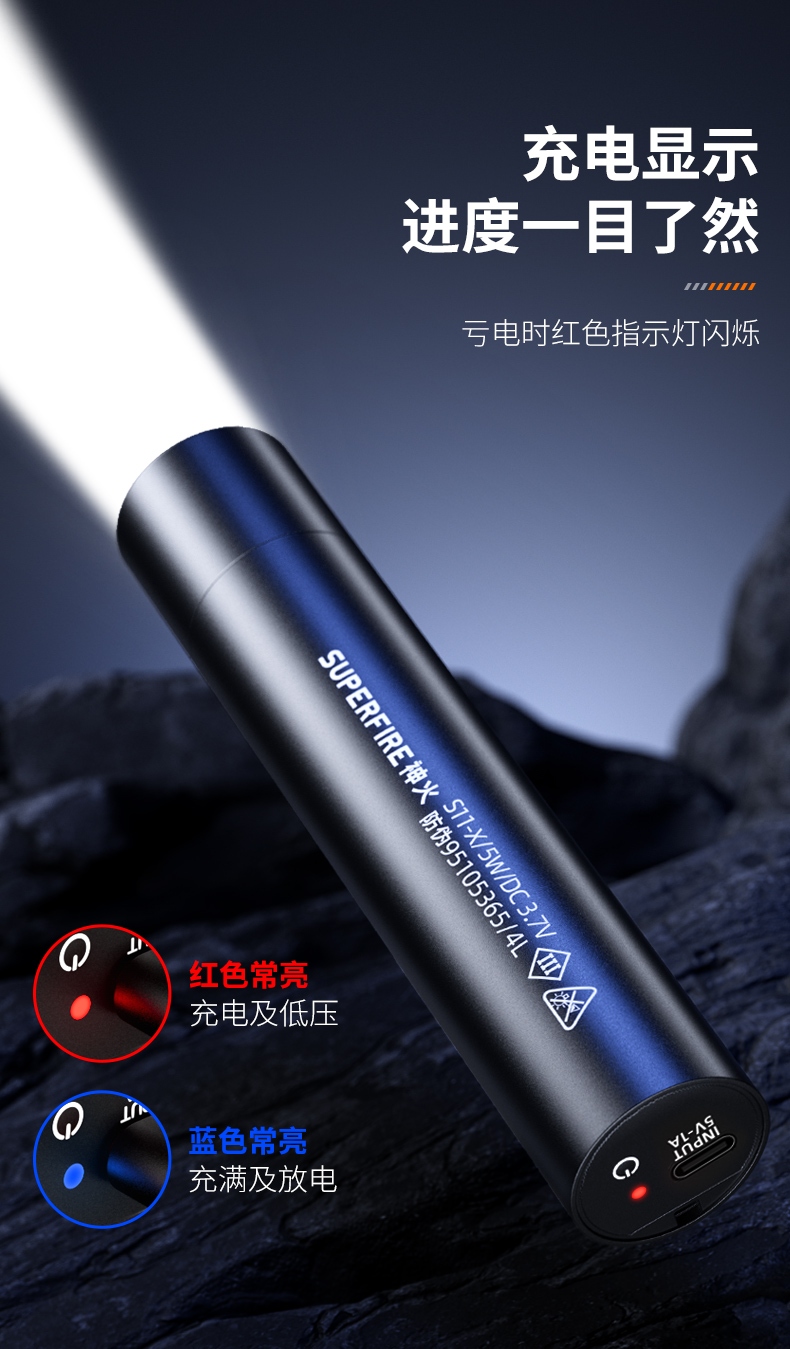 四档调光 Type-C充电 电量显示 铝合金筒身 持久续航 强力防水