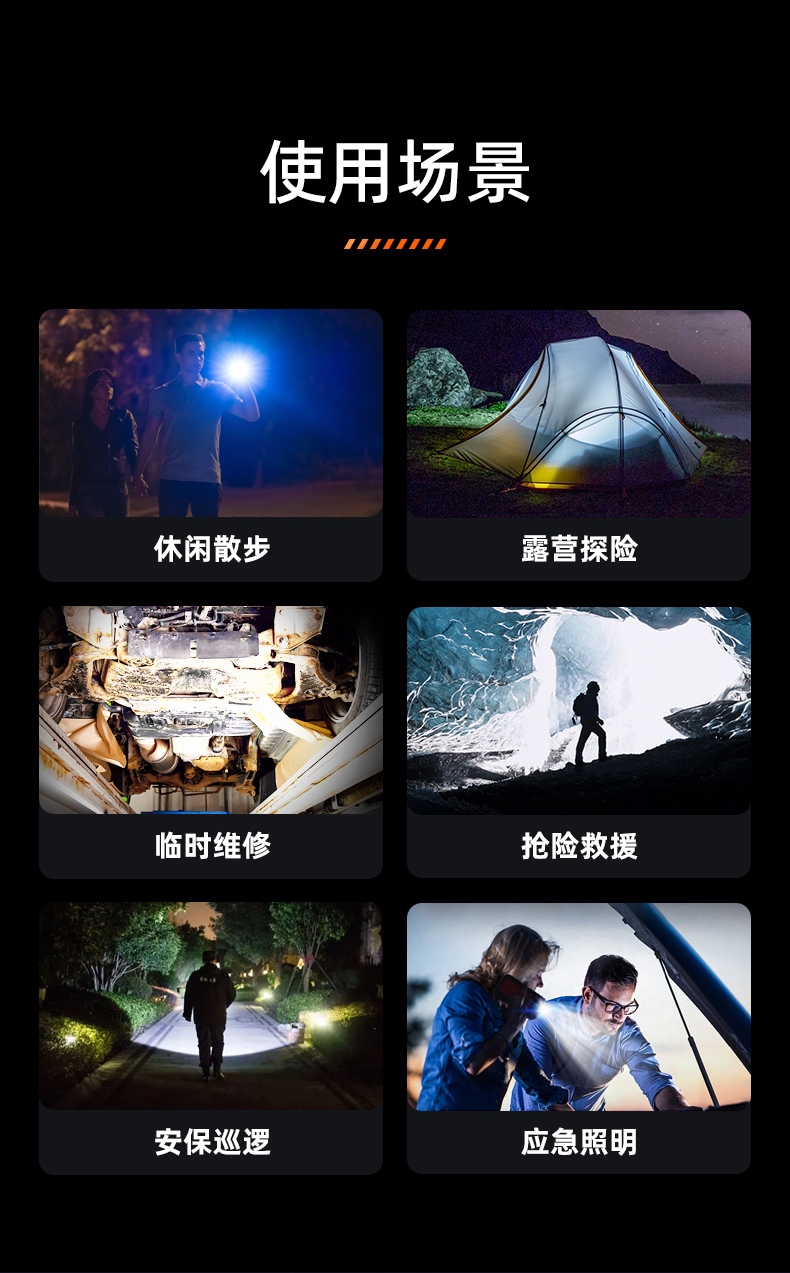 1、多档调光,可满足不同使用场景下的照明需求。 2、多种安全程序,可有效保护手电使用安全,延长手电使用寿命。 3、精致外观,时尚小巧。