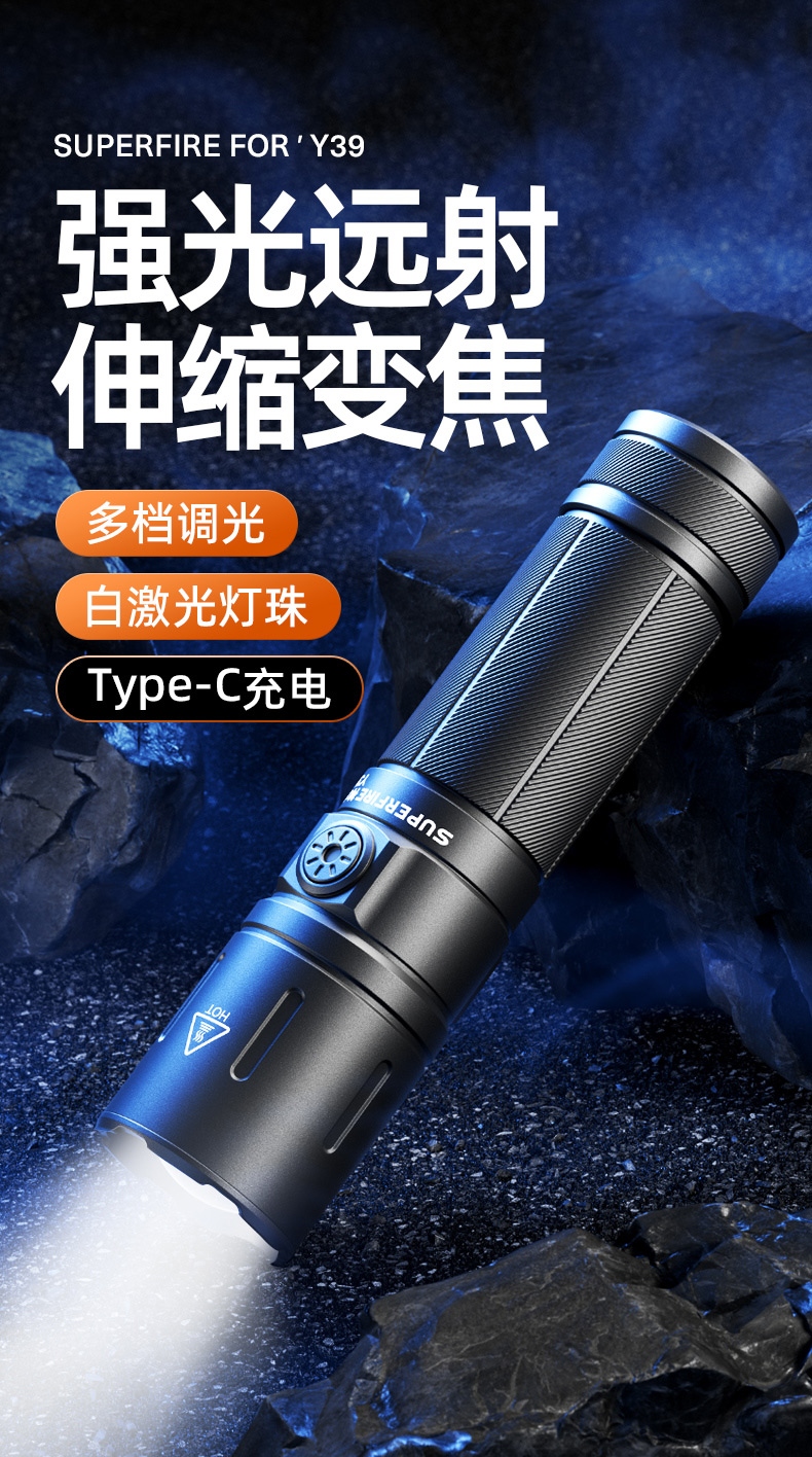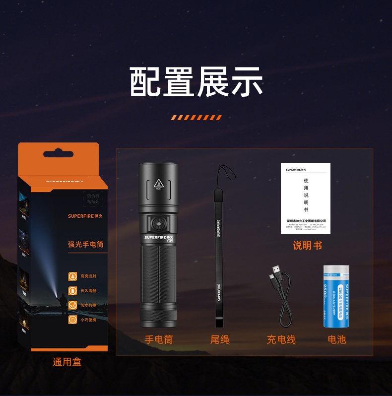 四档调光 Type-C充电 电量显示 铝合金筒身 持久续航 强力防水