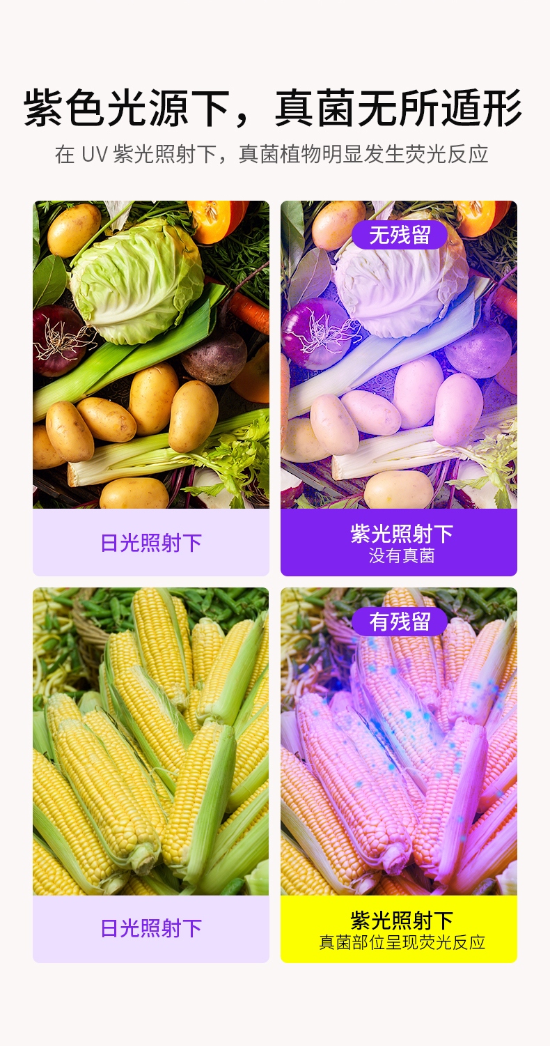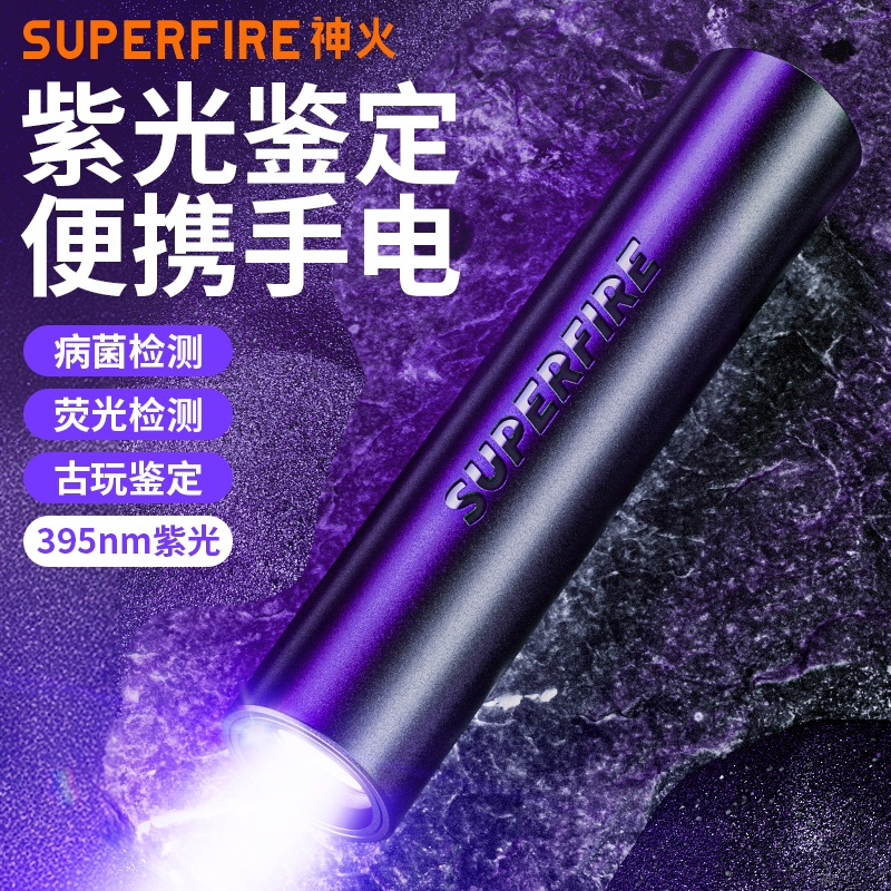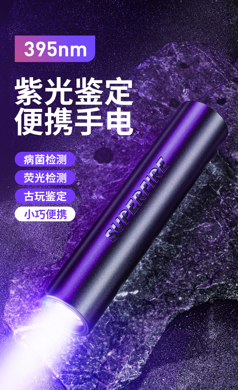 1、紫光手电:可用于验钞、识别荧光剂,宠物荧光检测,鉴别琥珀、蜜蜡,古玩修补鉴定。
