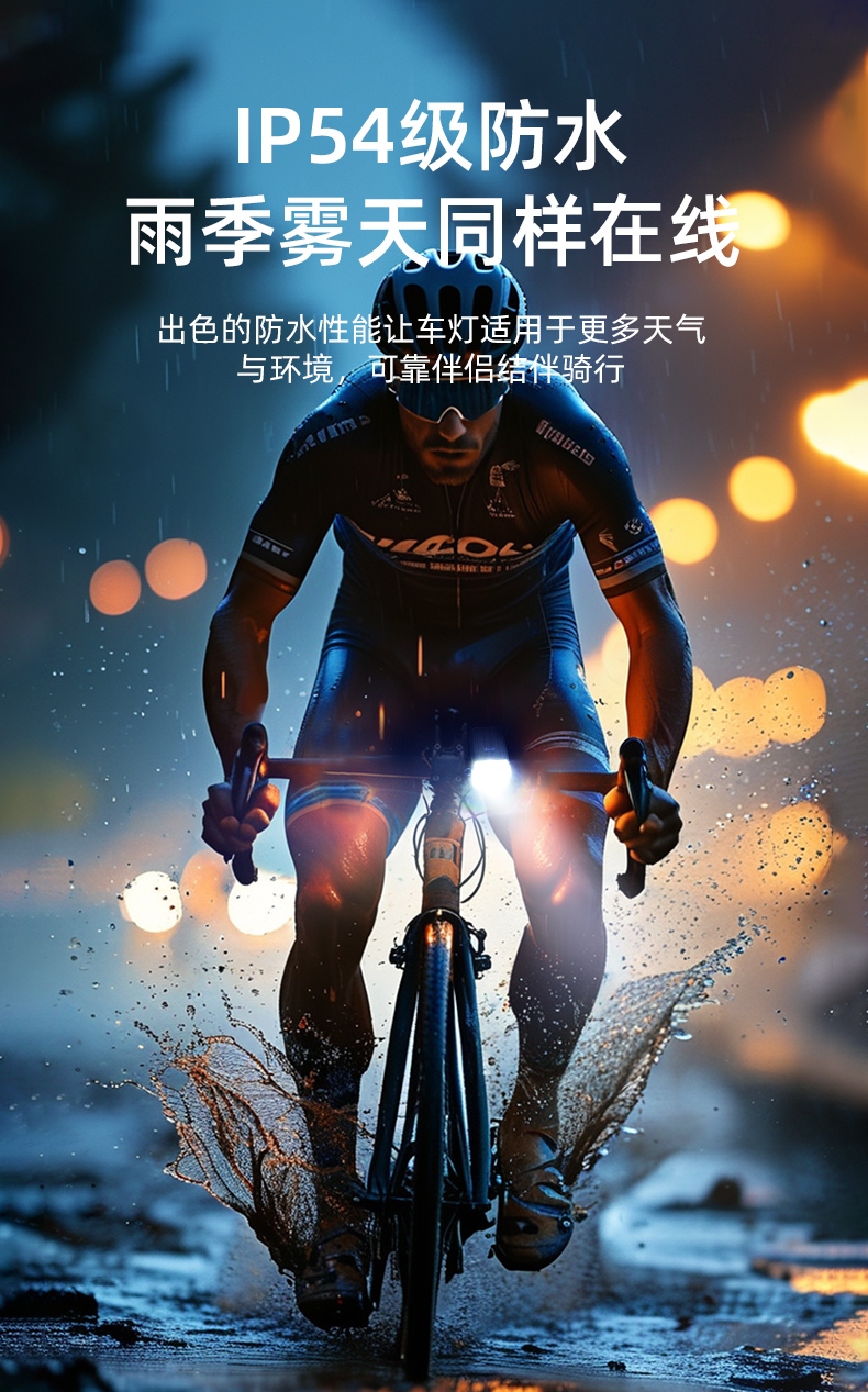 4、IP54级防水,雨季雾天同样在线,可靠伴侣结伴骑行;