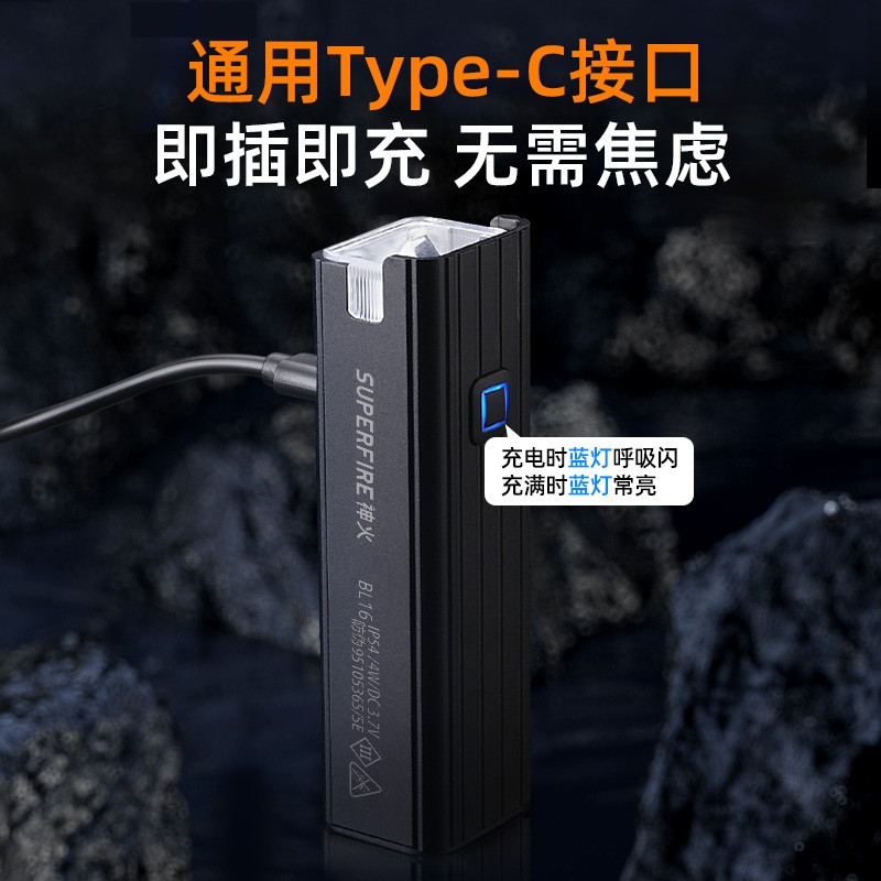 四档调光 Type-C充电 电量显示 铝合金筒身 持久续航 强力防水