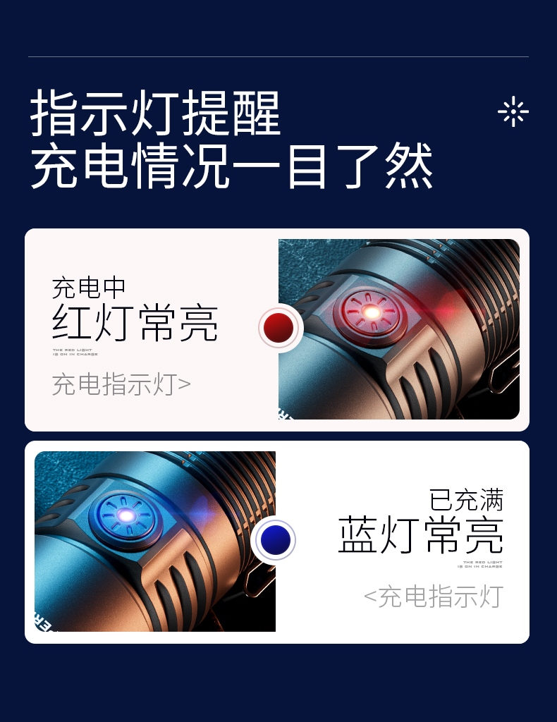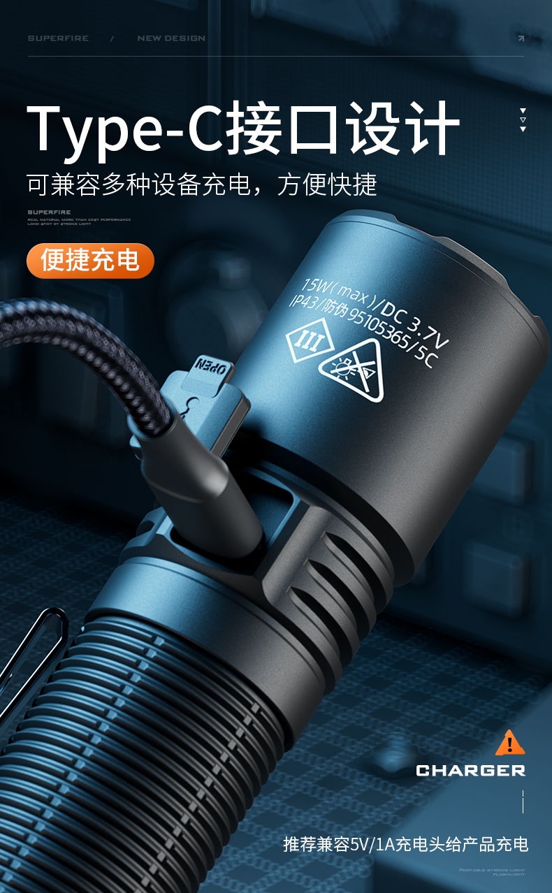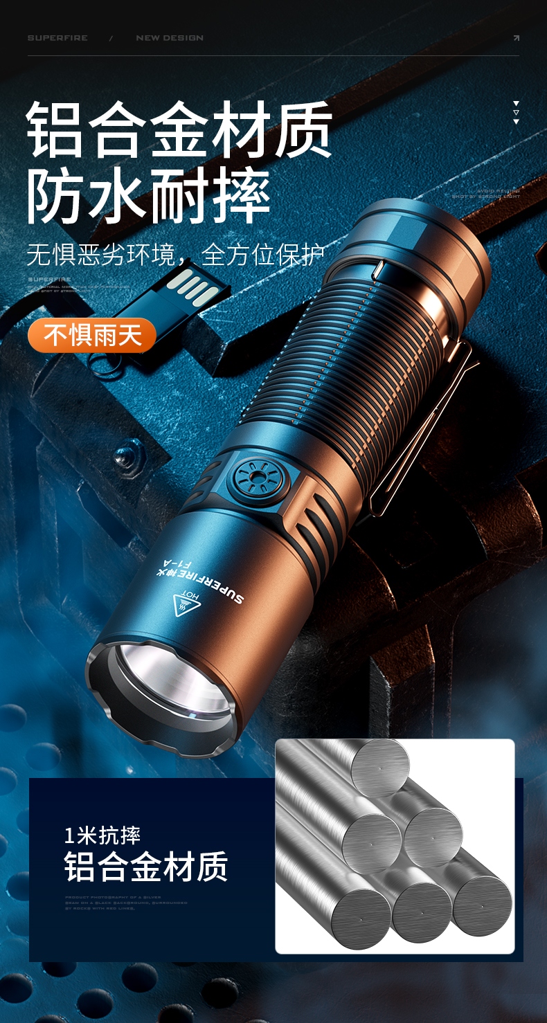 四档调光 Type-C充电 电量显示 铝合金筒身 持久续航 强力防水