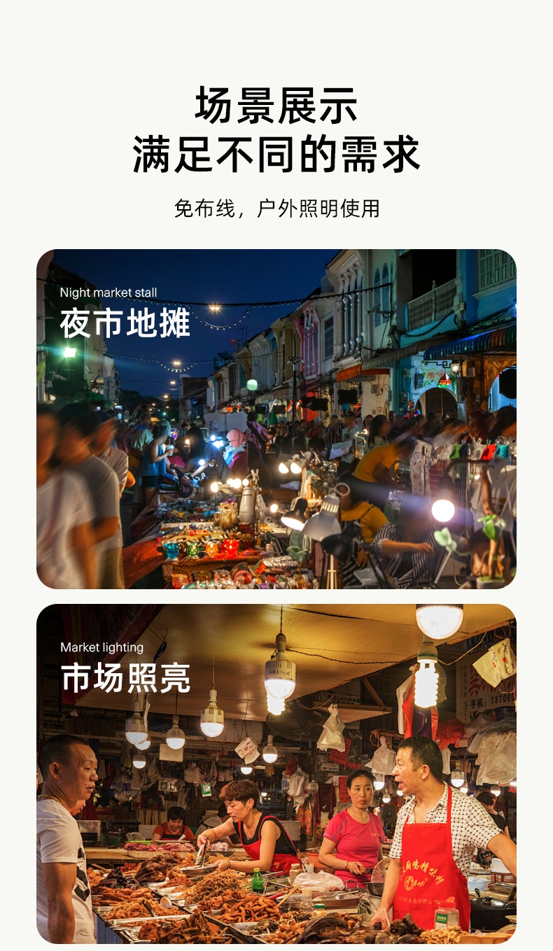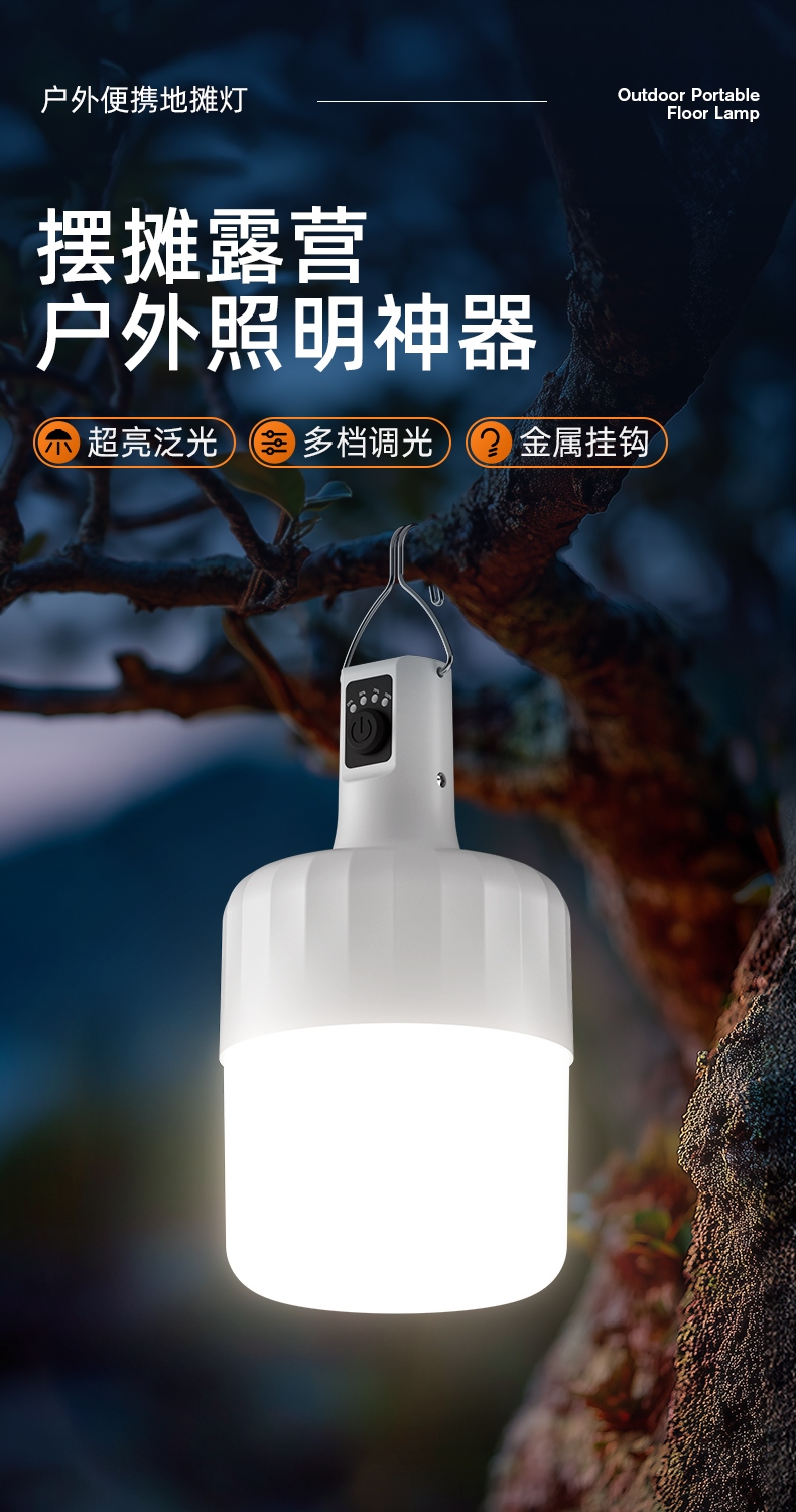 1、多档调光,可满足不同使用场景下的照明需求; 2、含提手,握感更舒适。携带更简单; 3、新型高亮远射灯珠,60W大功率,亮度高,照明效果好。