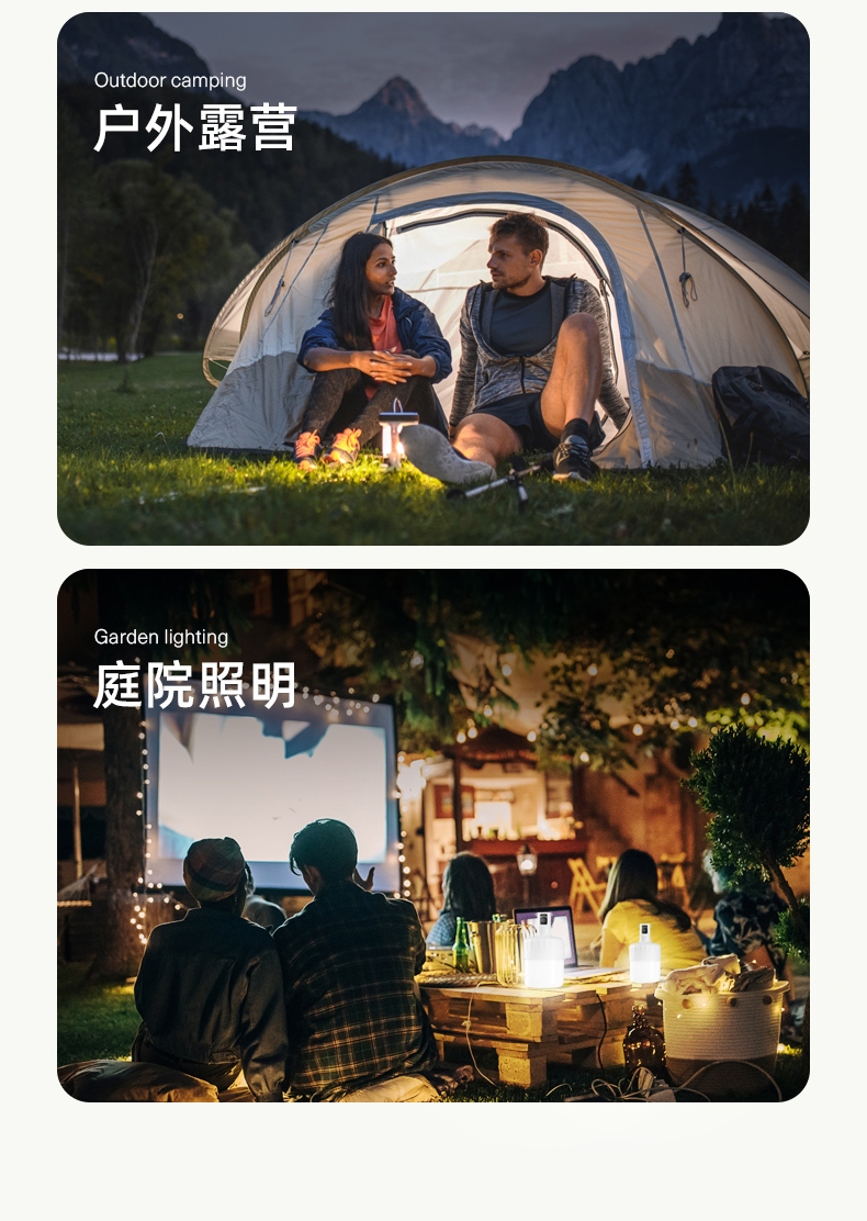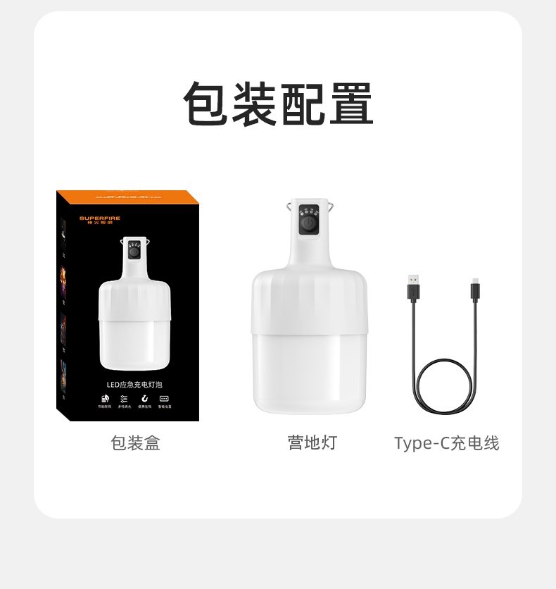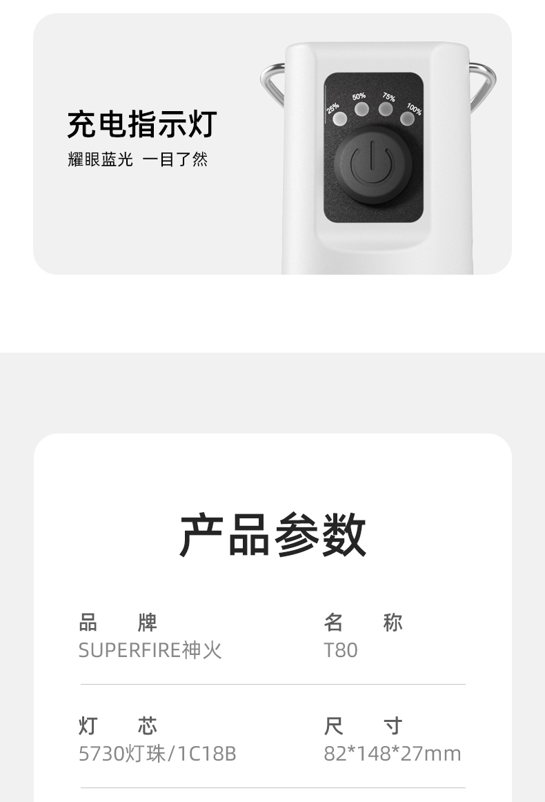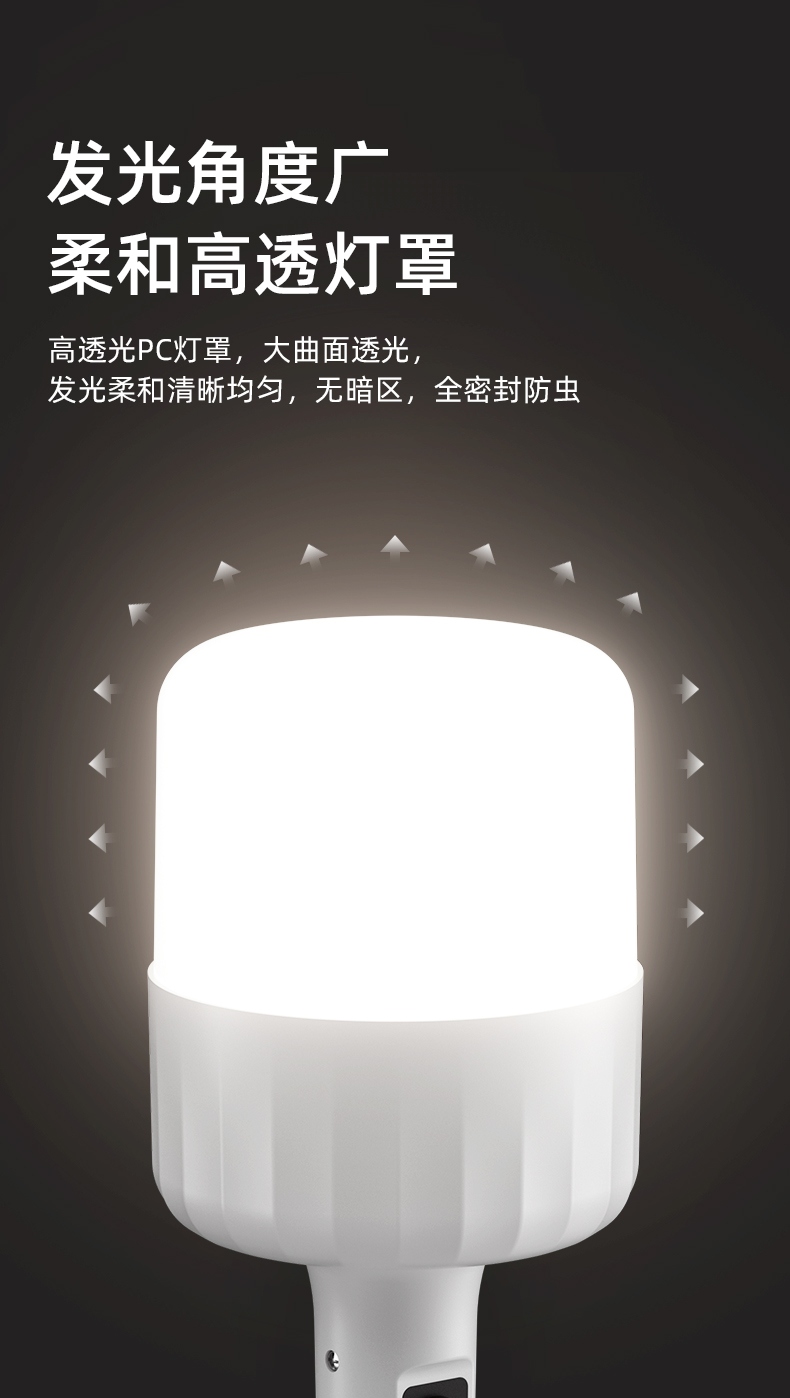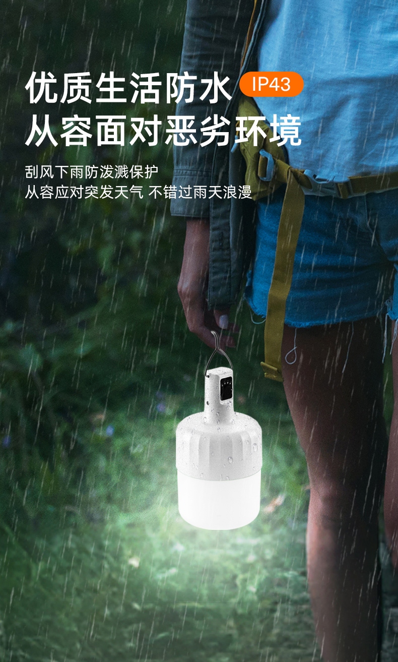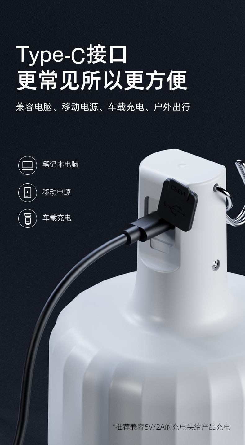 2.多样化充电,使用方便:可使用充电器、充电宝、电脑等设备为灯具充电。充电时可边充电边使用照明功能
