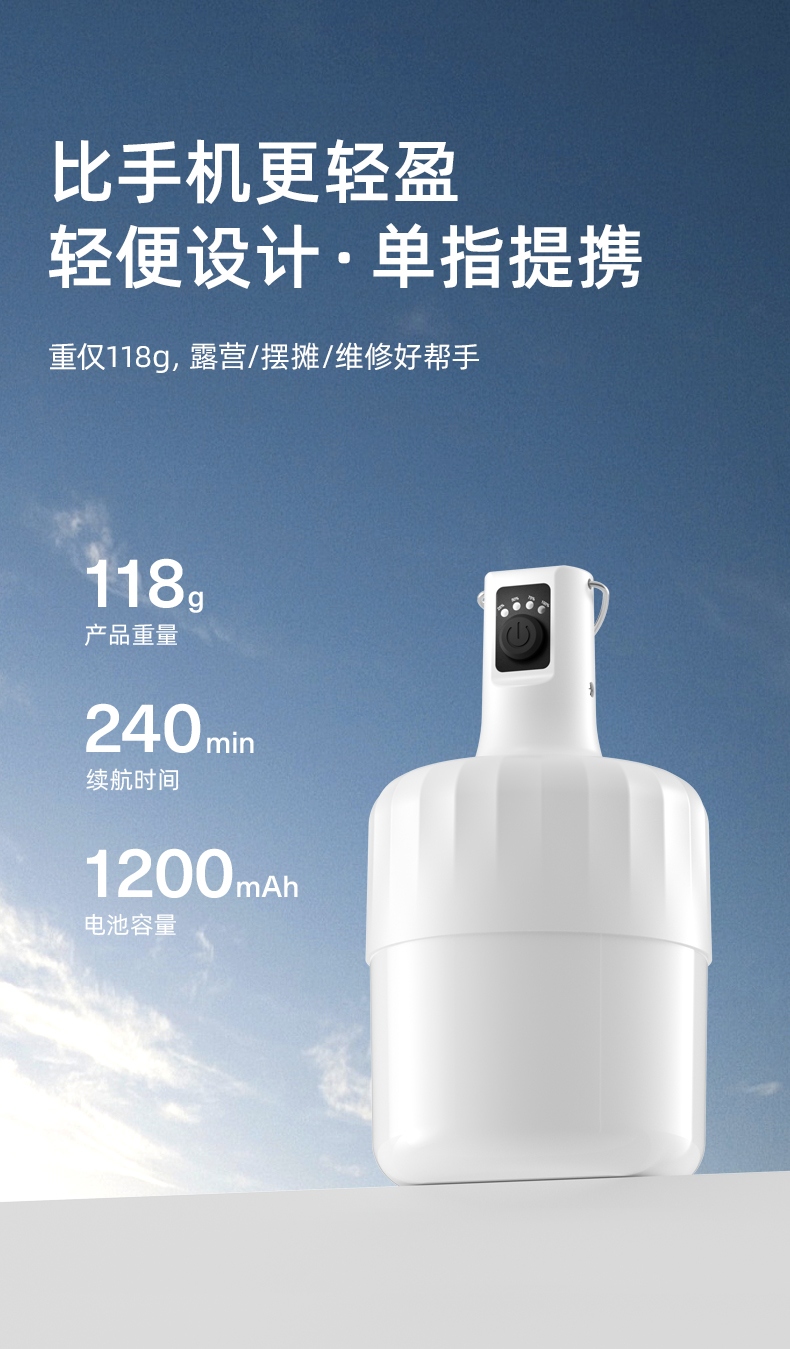4.此灯头部带有提手挂耳,可手提、可挂扣、使用相当方便。