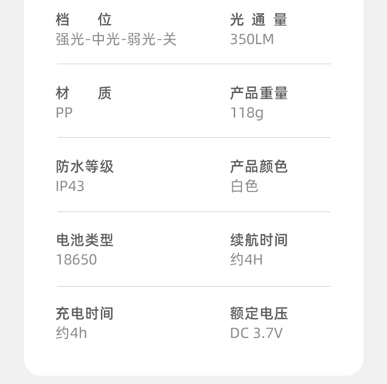 1、六档调光,可满足不同使用场景下的照明需求。 2、进口高亮朗明纳斯灯珠,照明效果更好。 3、含档位记忆,任意档位快捷关机 ,开机恢复关机前档位。