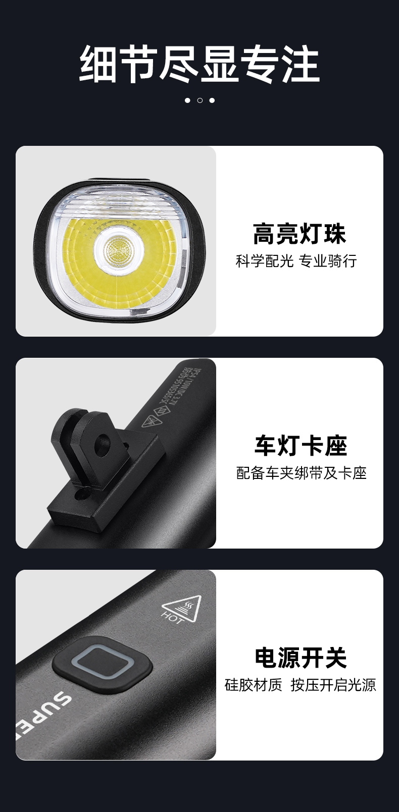 6、车夹装&支架装,配备车夹绑带及车灯卡座,针对不同车灯;