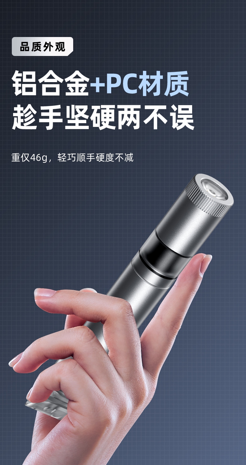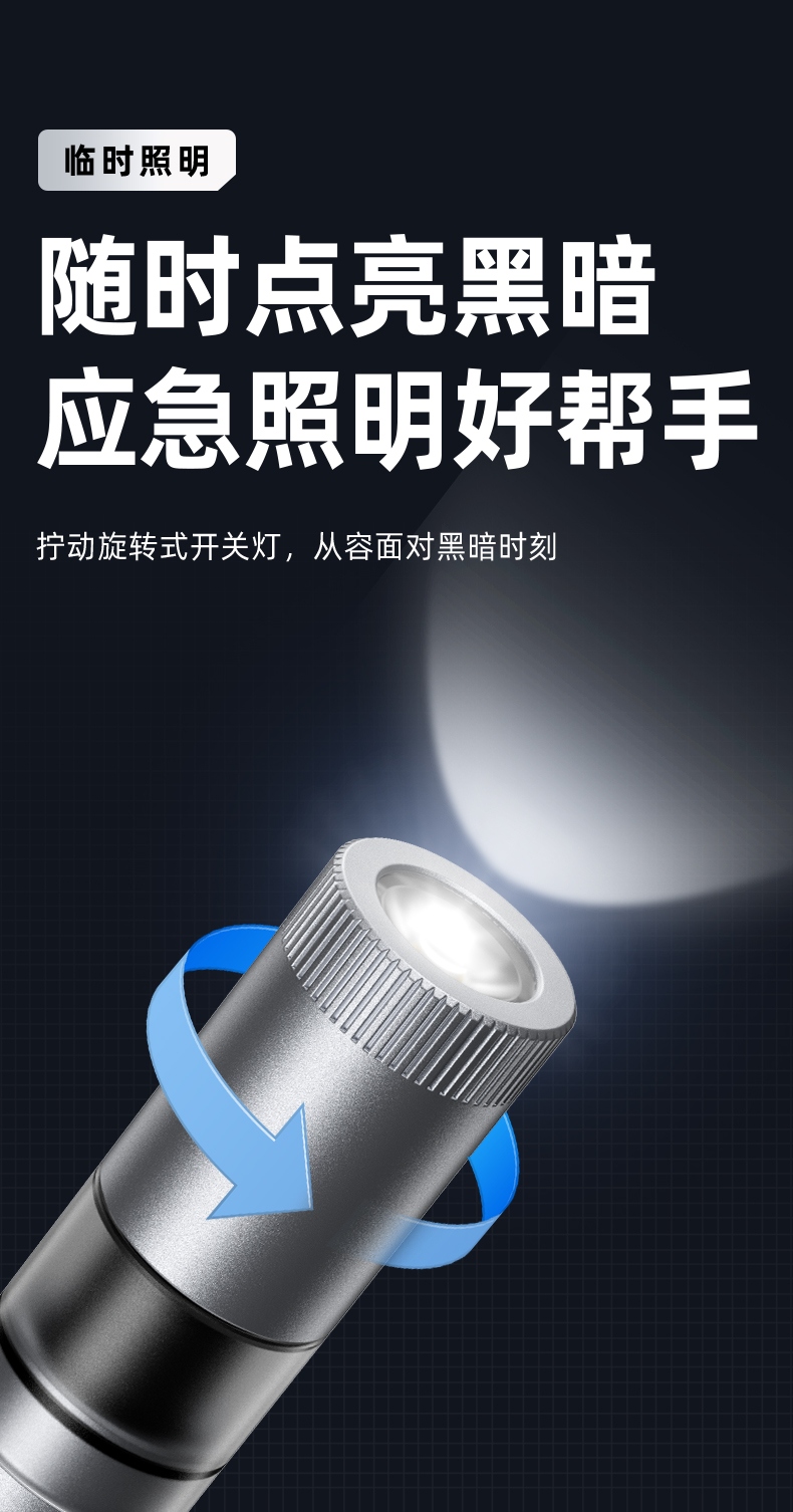 四档调光 Type-C充电 电量显示 铝合金筒身 持久续航 强力防水