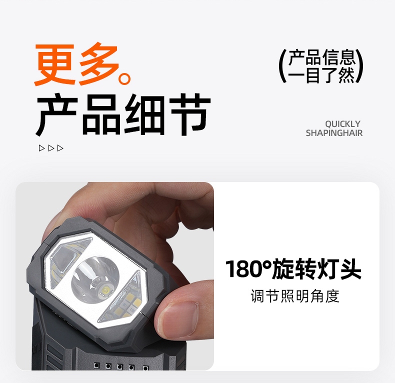 4、其他功能:灯头可180度旋转,底部有磁吸功能。