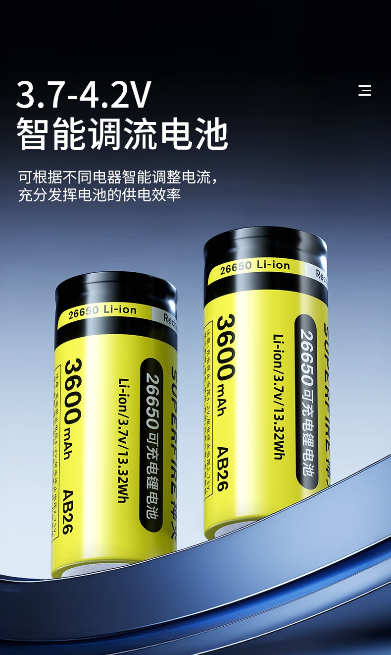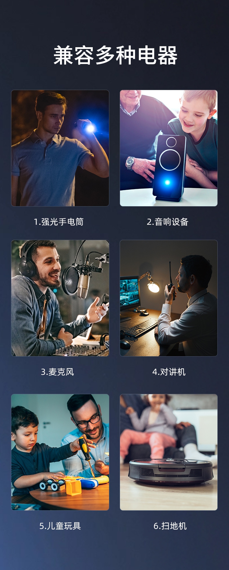 5、3.7-4.2V智能调流,可根据不同电器智能调整电流,充分发挥电池的供电效率。