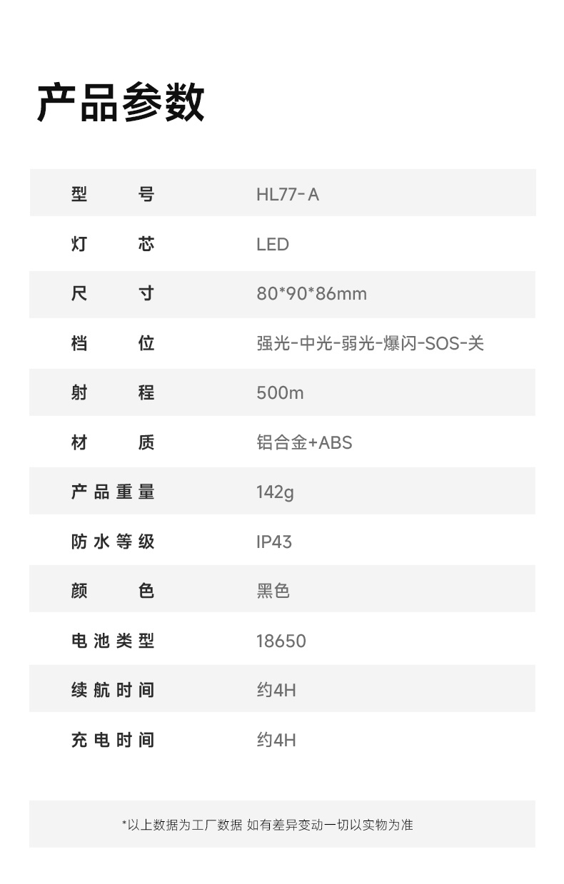 1、千米远射,射程更远,光斑更聚焦。 2、进口灯珠,亮度高,照明效果更好。 3、前后双按键,光源一键点亮,高亮瞬间开启。