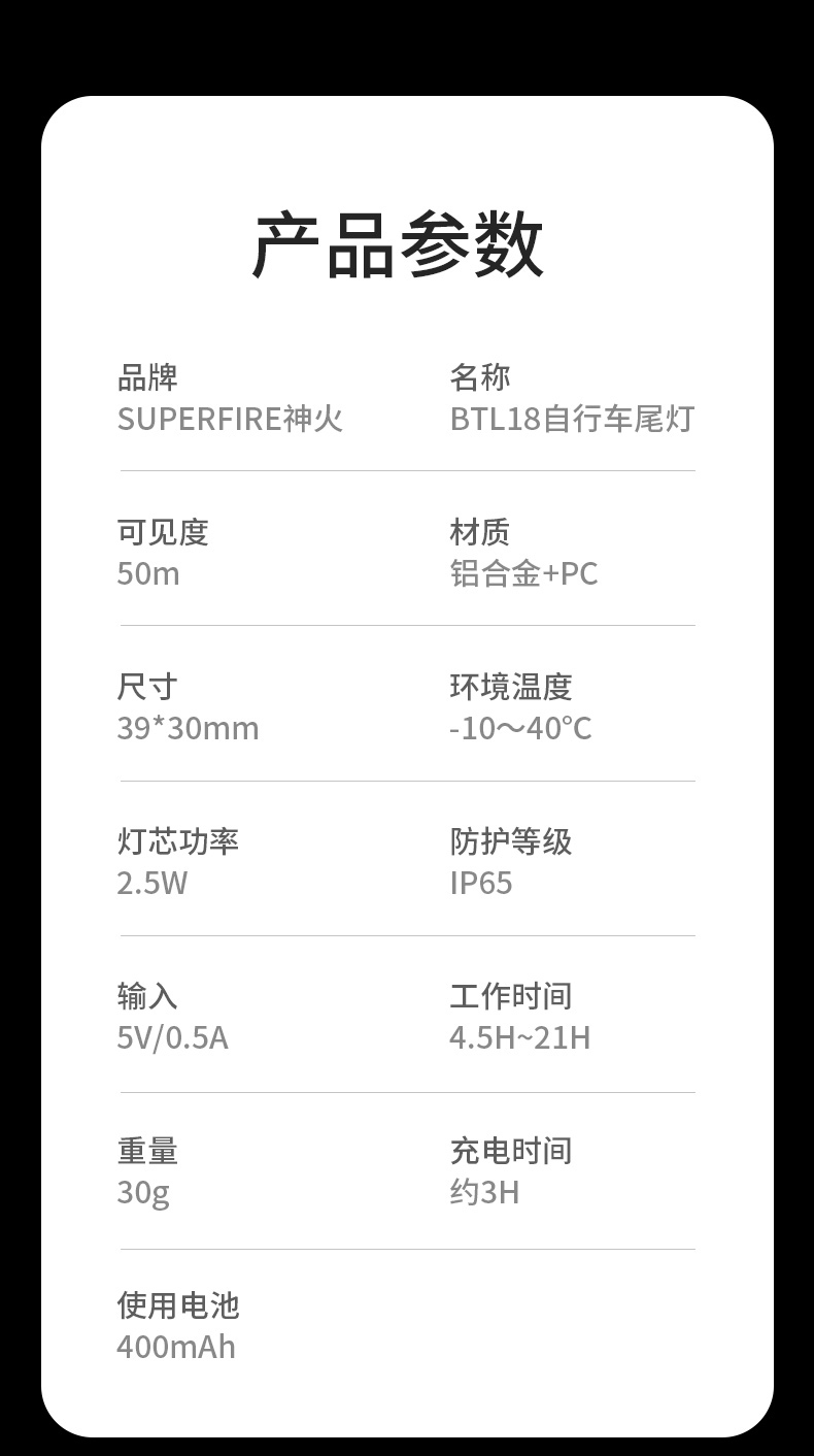 1、千米远射,射程更远,光斑更聚焦。 2、进口灯珠,亮度高,照明效果更好。 3、前后双按键,光源一键点亮,高亮瞬间开启。