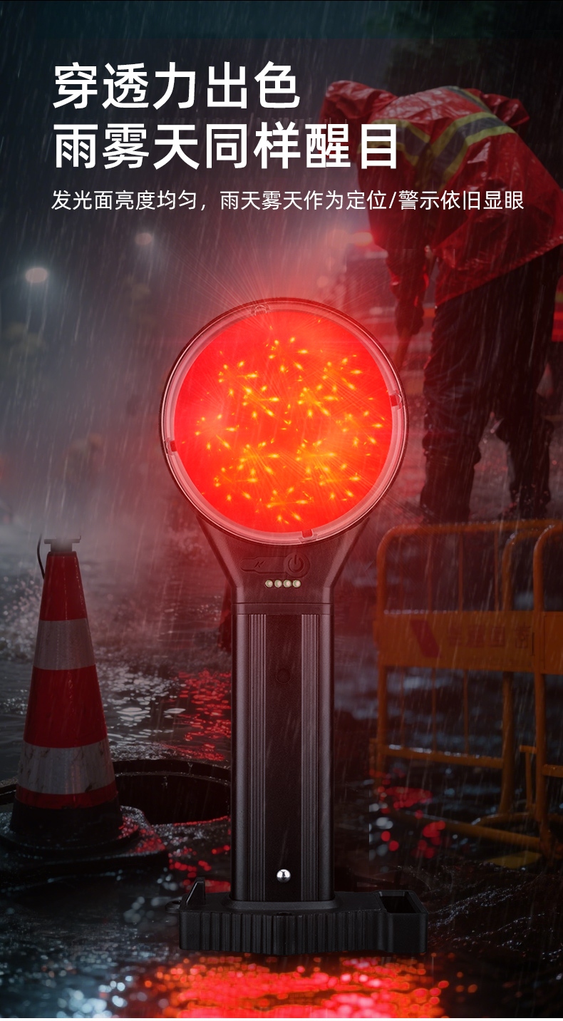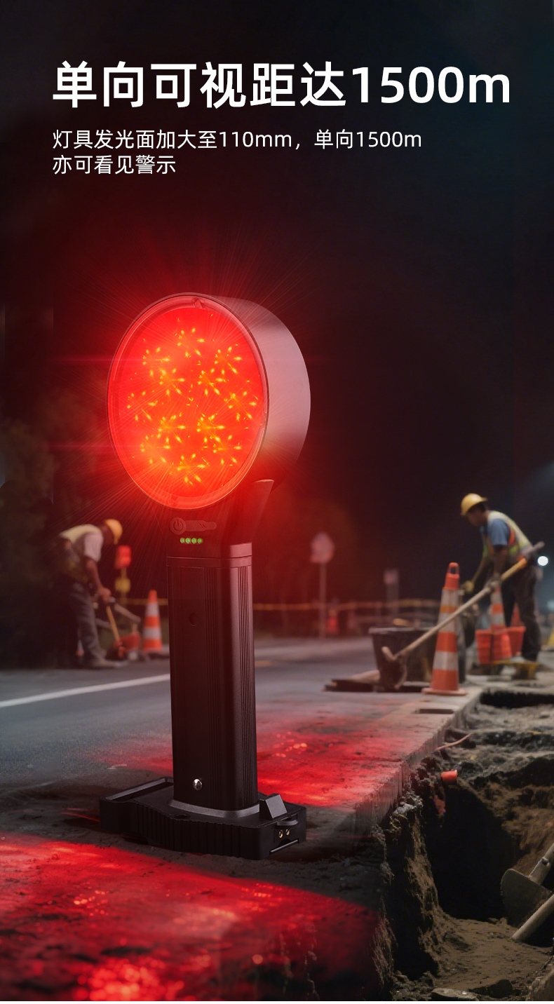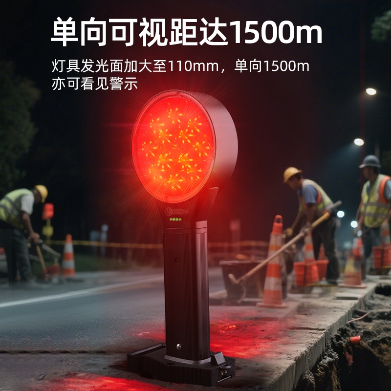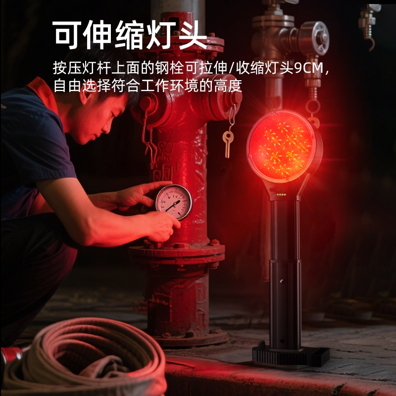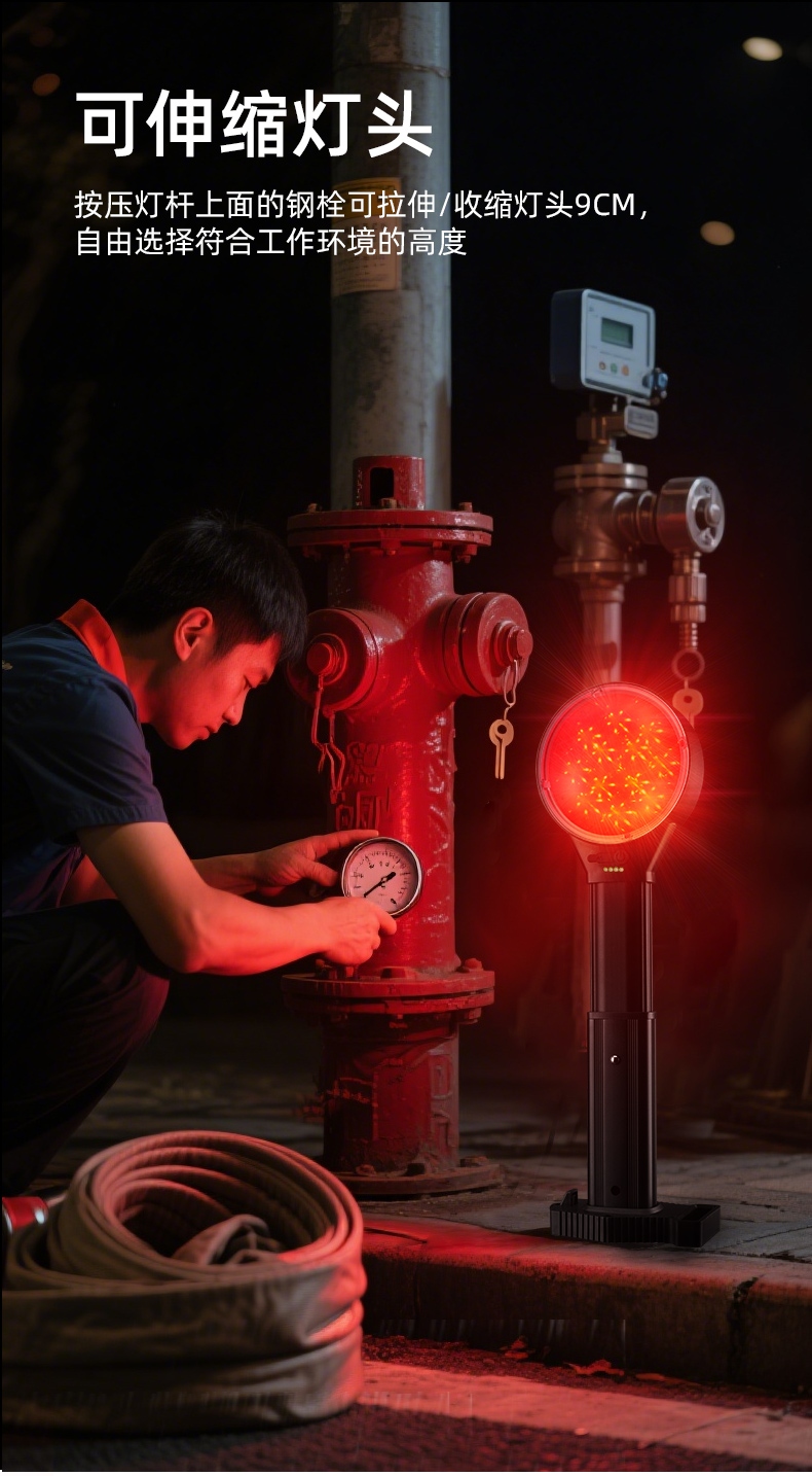 正反两面发光,单向可视距离达1500米,灯头可伸缩9CM,雨雾穿透力强,两挡灯光,钢化玻璃镜片,可磁吸安装,可挂装