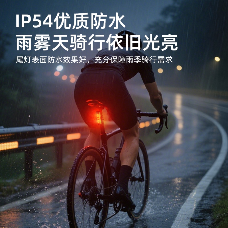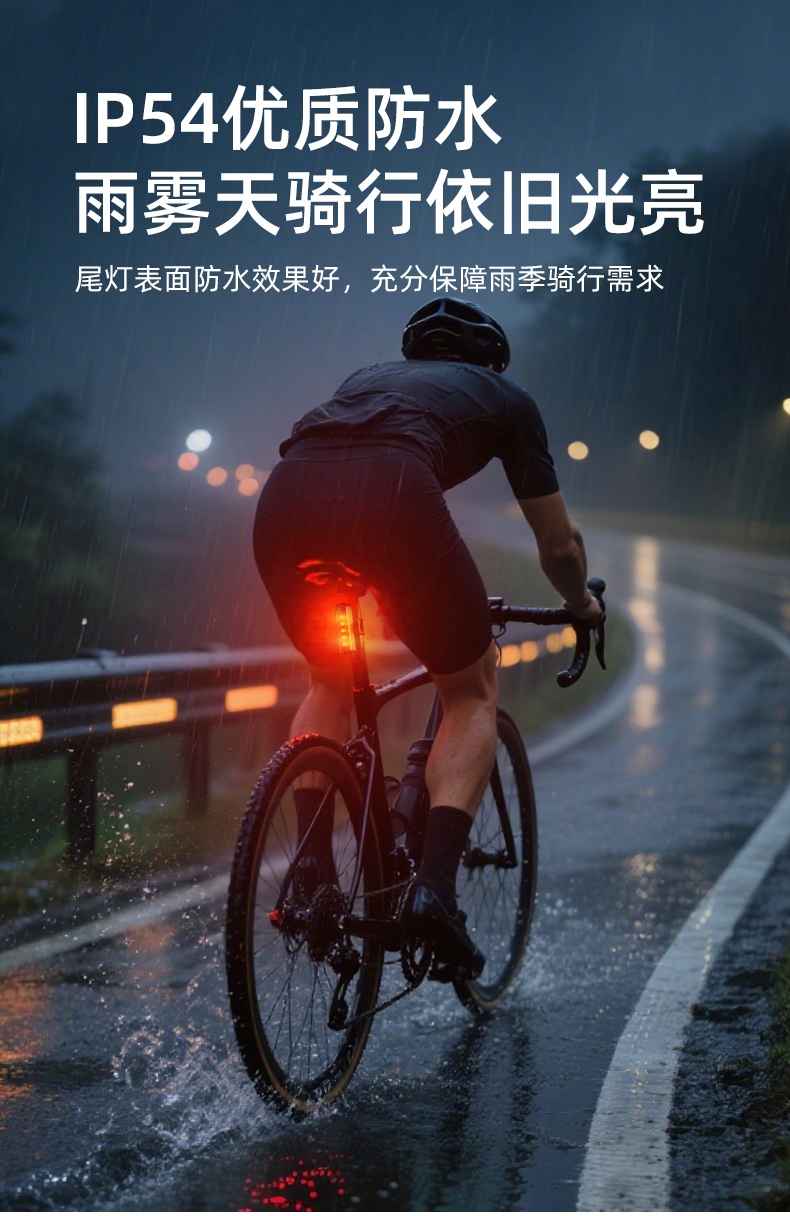 6、IP54优质防水,雨雾天骑行依旧光亮,充分保障雨季骑行需求;