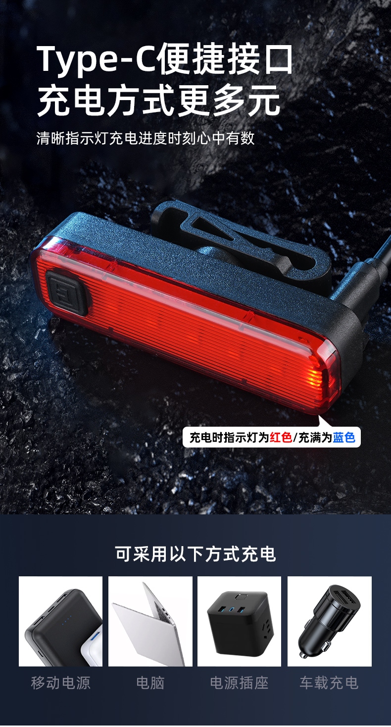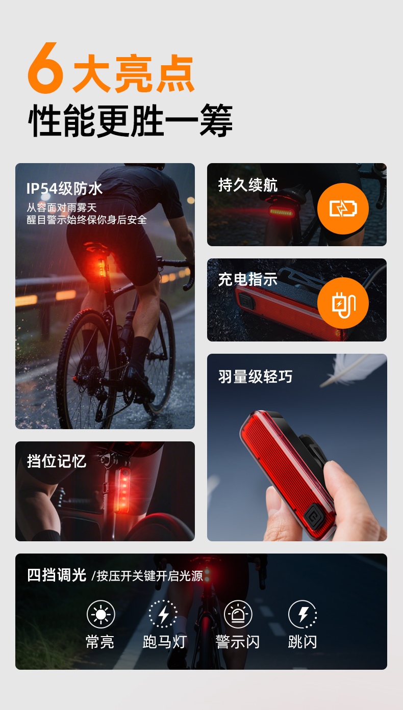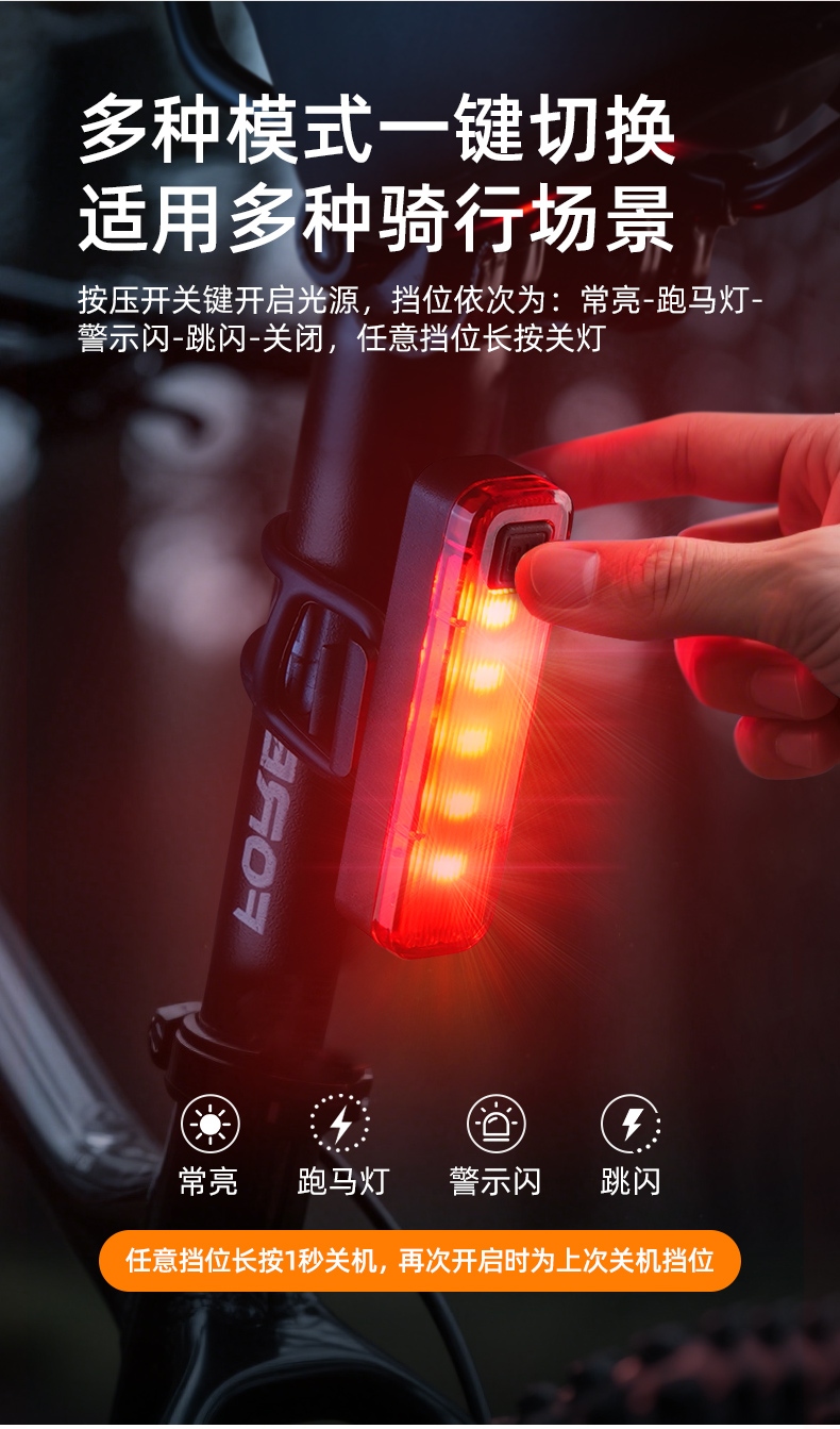 1、多种灯光模式,一键切换,适用多种骑行场景;