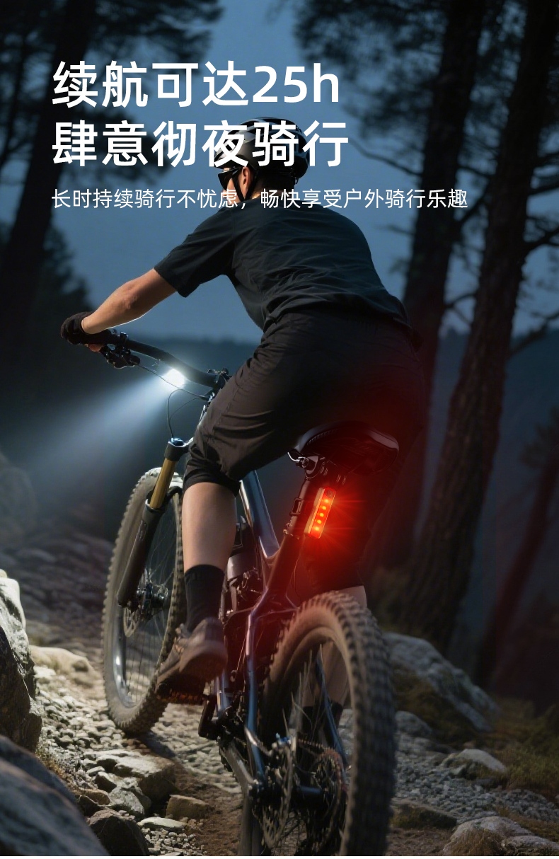 3、续航可达25h,肆意彻夜骑行不忧虑,畅快享受户外骑行乐趣;