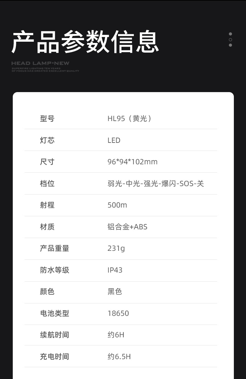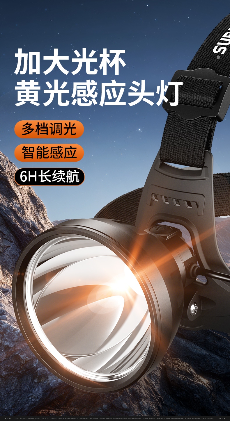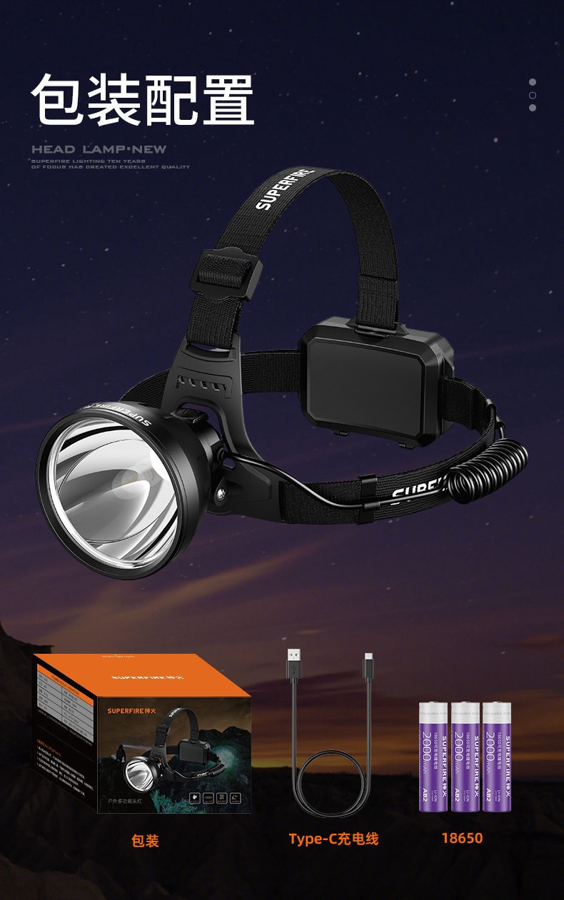 强光亮度,运动头灯,前后均衡设计,轻便不压头,可调节式头灯带,佩戴方便舒适,伸缩调焦,光照范围大,照射距离远,头灯角度调节,超90度角度随意调节,适宜各种环境使用