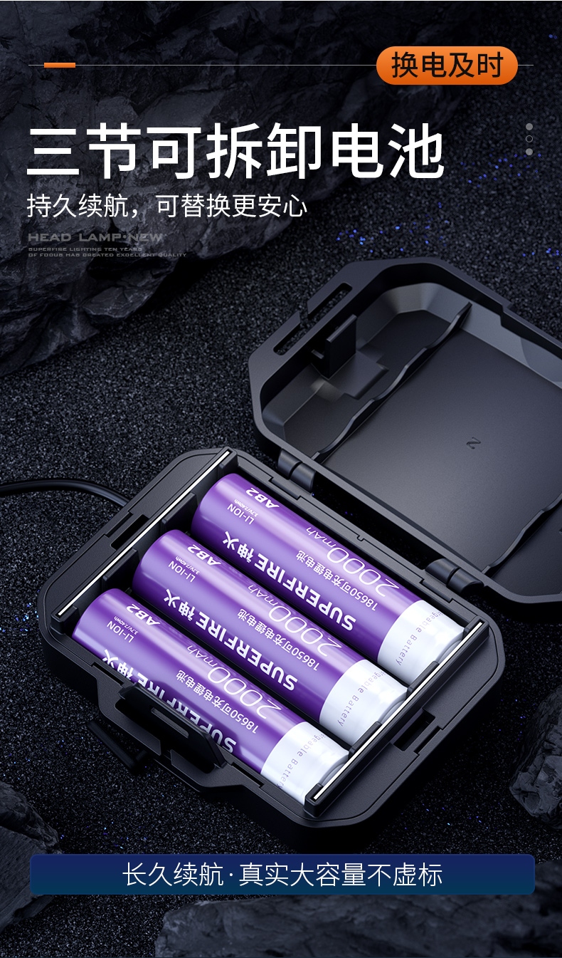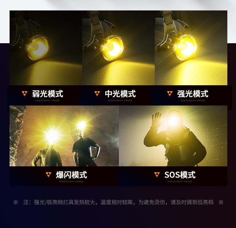 1、五档一体:弱中强、爆闪、SOS自由切换,可满足不同场景下的使用需求 。